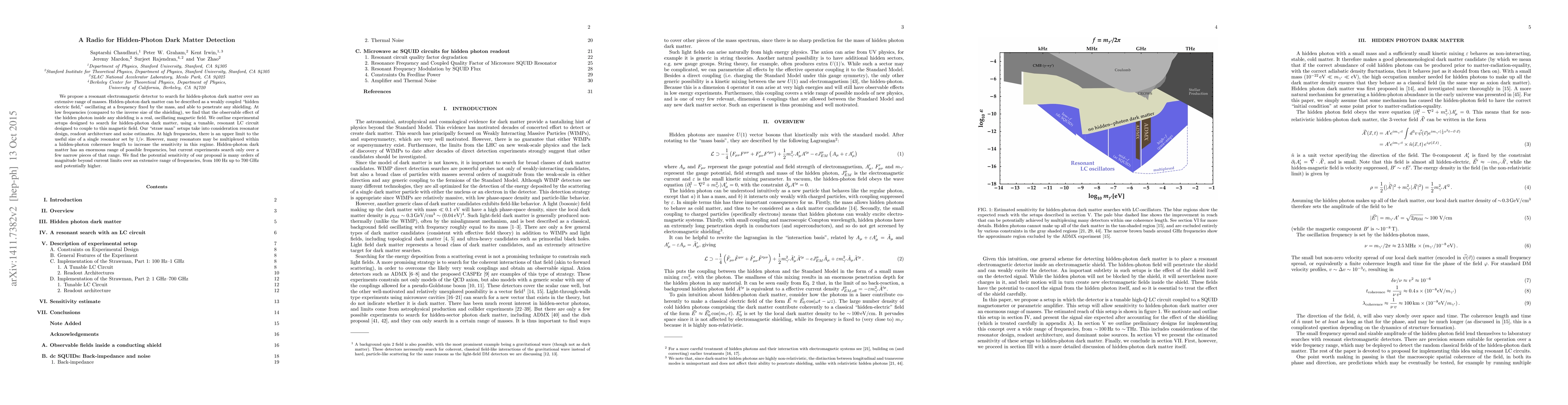 We propose a resonant electromagnetic detector to search for hidden-photon dark matter over an extensive range of masses. Hidden-photon dark matter can be described as a weakly coupled "hidden electric field," oscillating at a frequency fixed by the mass, and able to penetrate any shielding. At low frequencies (compared to the inverse size of the shielding), we find that observable effect of the hidden photon inside any shielding is a real, oscillating magnetic field. We outline experimental setups designed to search for hidden-photon dark matter, using a tunable, resonant LC circuit designed to couple to this magnetic field. Our "straw man" setups take into consideration resonator design, readout architecture and noise estimates. At high frequencies,there is an upper limit to the useful size of a single resonator set by $1/\nu$. However, many resonators may be multiplexed within a hidden-photon coherence length to increase the sensitivity in this regime. Hidden-photon dark matter has an enormous range of possible frequencies, but current experiments search only over a few narrow pieces of that range. We find the potential sensitivity of our proposal is many orders of magnitude beyond current limits over an extensive range of frequencies, from 100 Hz up to 700 GHz and potentially higher.