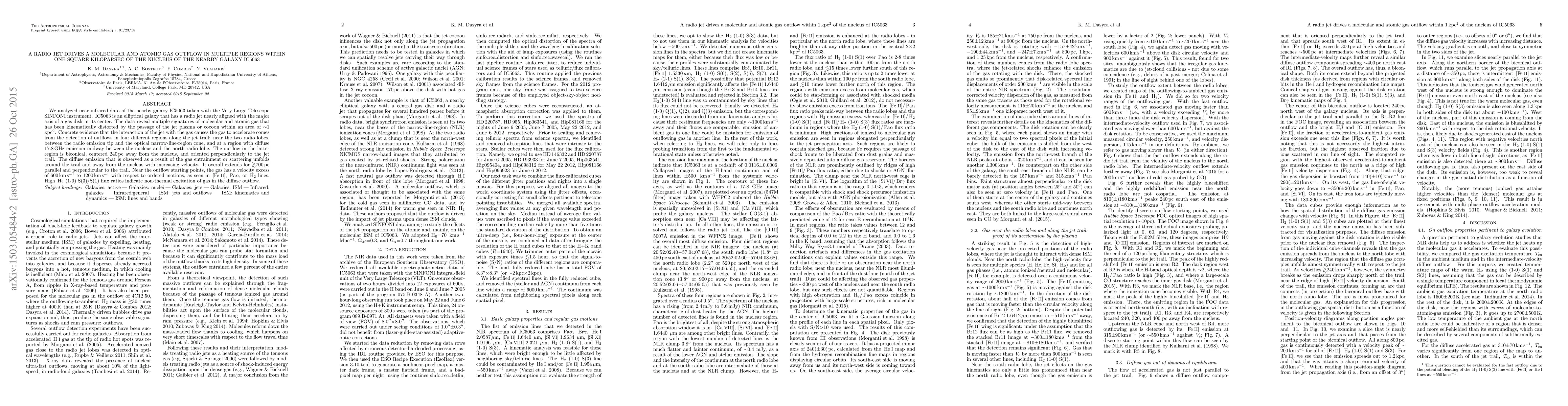This study reveals that a radio jet in the elliptical galaxy IC5063 drives molecular and atomic gas outflows within a ~1 kpc^2 area near its nucleus, with evidence of gas acceleration and biconical outflow structures. The jet interaction causes gas velocities to exceed 600 km/s to 1200 km/s, indicating non-thermal excitation.