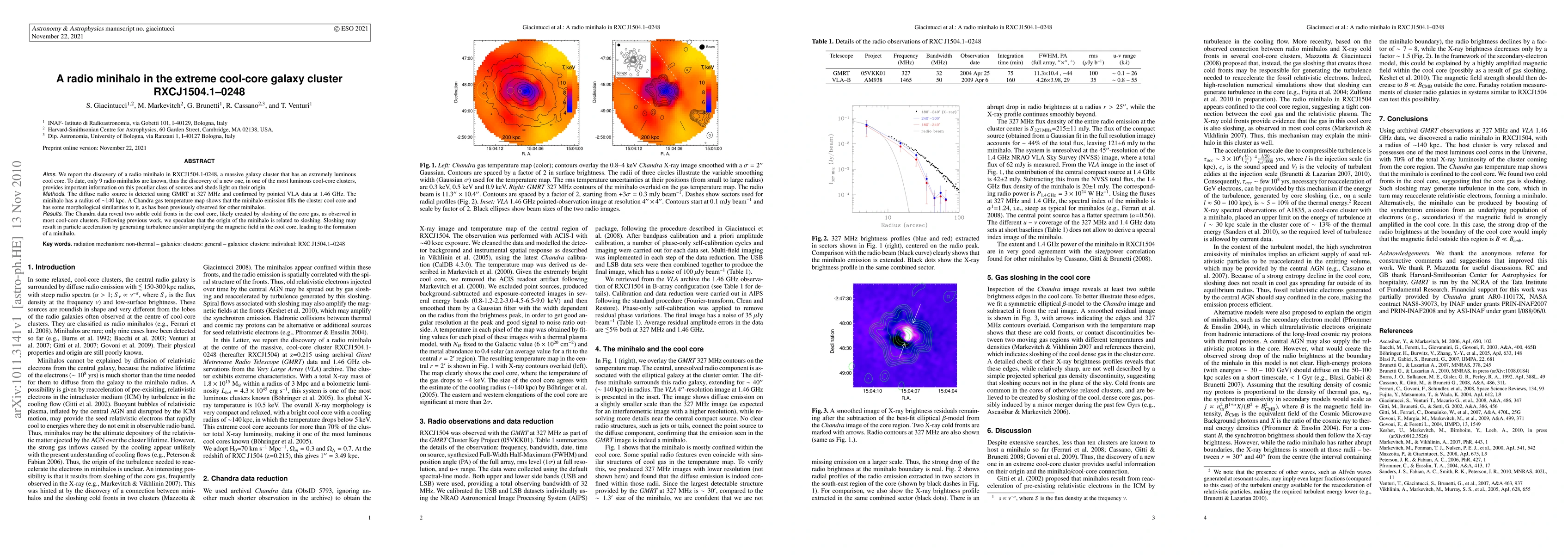 Researchers discovered a radio minihalo in the galaxy cluster RXCJ1504.1-0248, providing insights into its origin and shedding light on this rare class of sources.
