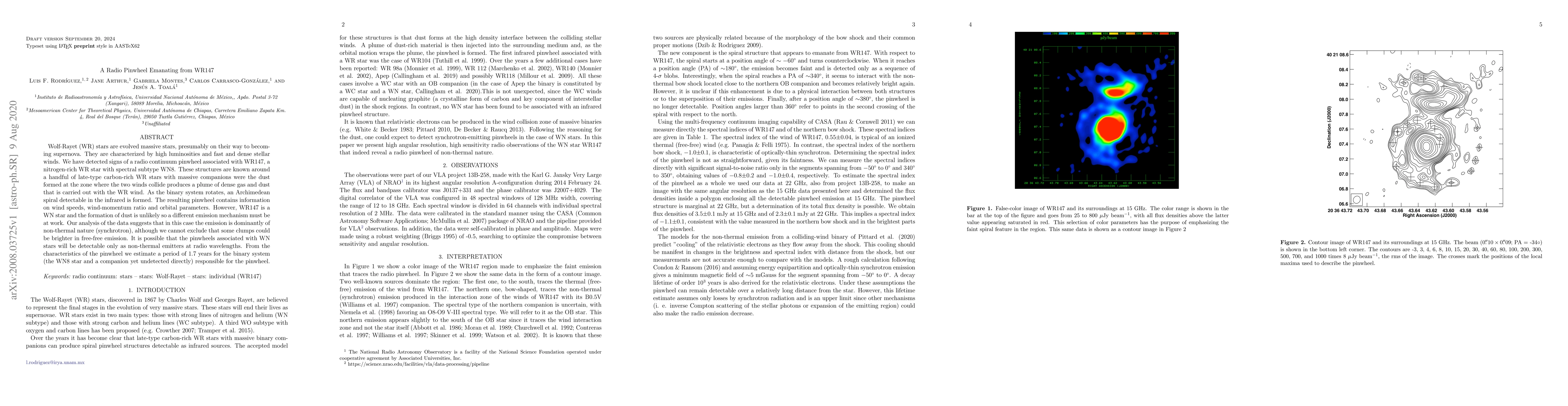 Researchers discovered a radio pinwheel around WR147, a nitrogen-rich WR star, suggesting its binary system has an orbital period of 1.7 years. The emission mechanism is likely non-thermal, shedding light on the unique characteristics of WN stars at radio wavelengths.