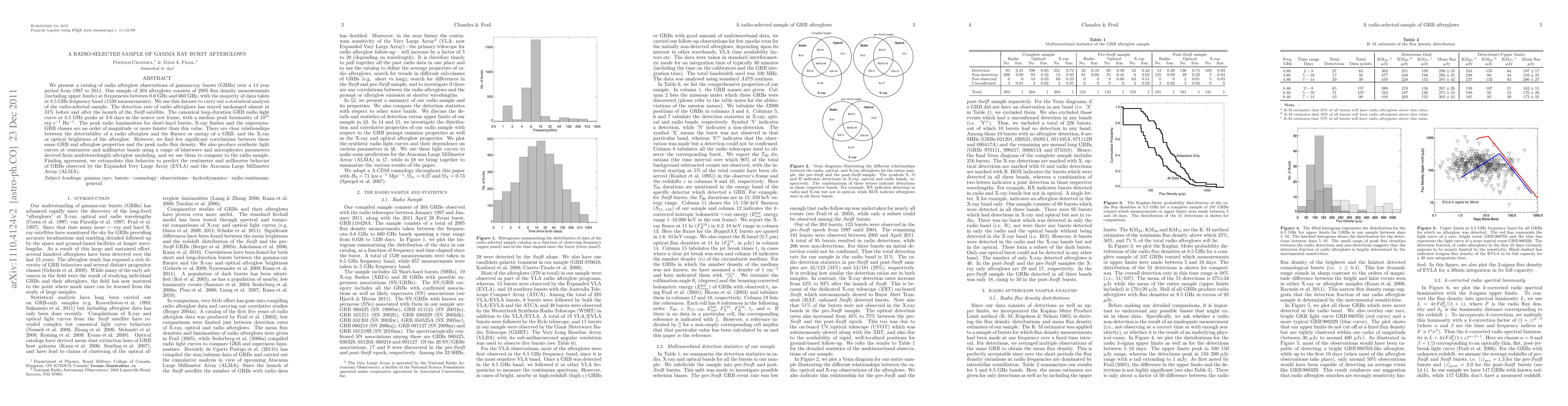 This paper catalogs radio afterglow observations of 304 gamma-ray bursts (GRBs) from 1997 to 2011, revealing a consistent detection rate of 31%. The study finds that long-duration GRBs peak in radio luminosity at 3-6 days, while short-duration GRBs are significantly fainter, and correlates radio detectability with GRB energy and brightness.