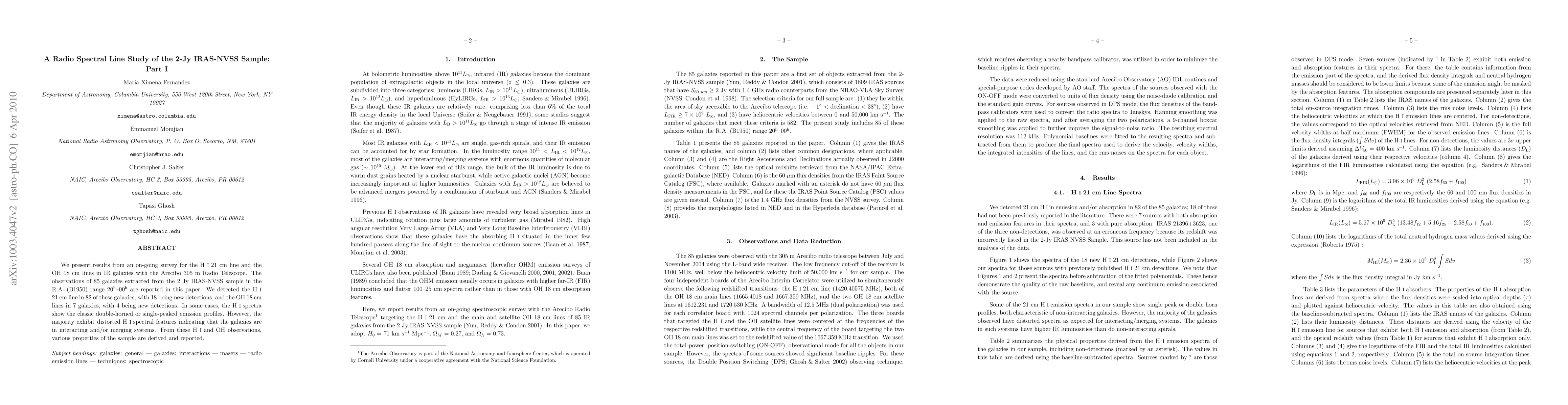 We present results from an on-going survey for the HI 21 cm line and the OH 18 cm lines in IR galaxies with the Arecibo 305 m Radio Telescope. The observations of 85 galaxies extracted from the 2 Jy IRAS-NVSS sample in the R.A. (B1950) range 20 h-00 h are reported in this paper. We detected the HI 21 cm line in 82 of these galaxies, with 18 being new detections, and the OH 18 cm lines in 7 galaxies, with 4 being new detections. In some cases, the HI spectra show the classic double-horned or single-peaked emission profiles. However, the majority exhibit distorted HI spectral features indicating that the galaxies are in interacting and/or merging systems. From these HI and OH observations, various properties of the sample are derived and reported.