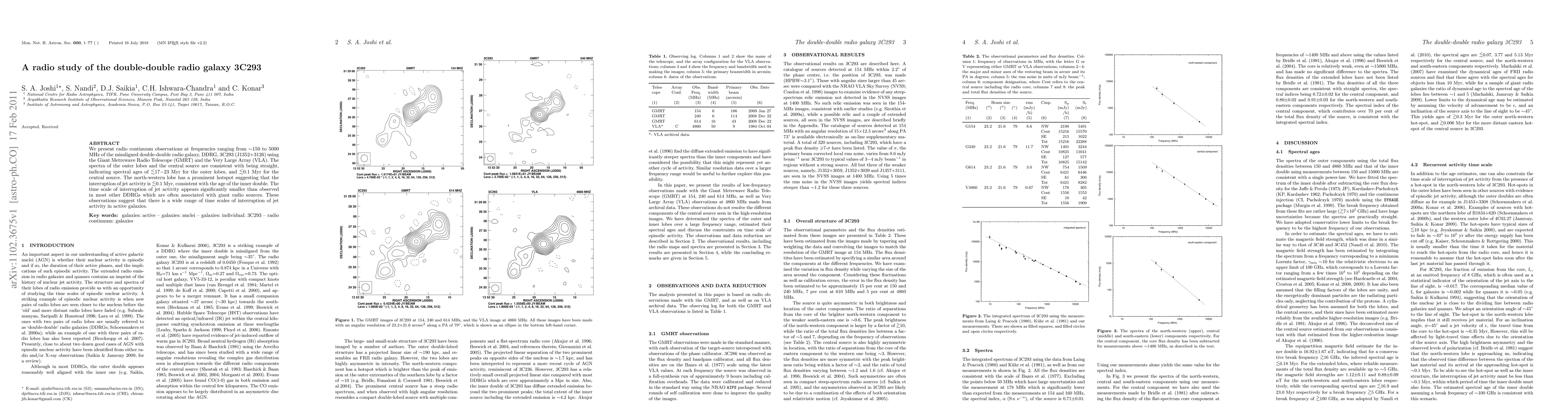Researchers studied the radio galaxy 3C293, finding its outer lobes have spectral ages of 17-23 million years and a central source age of 0.1 million years, with jet activity interruption timescales ranging from 0.1 to 23 million years.
