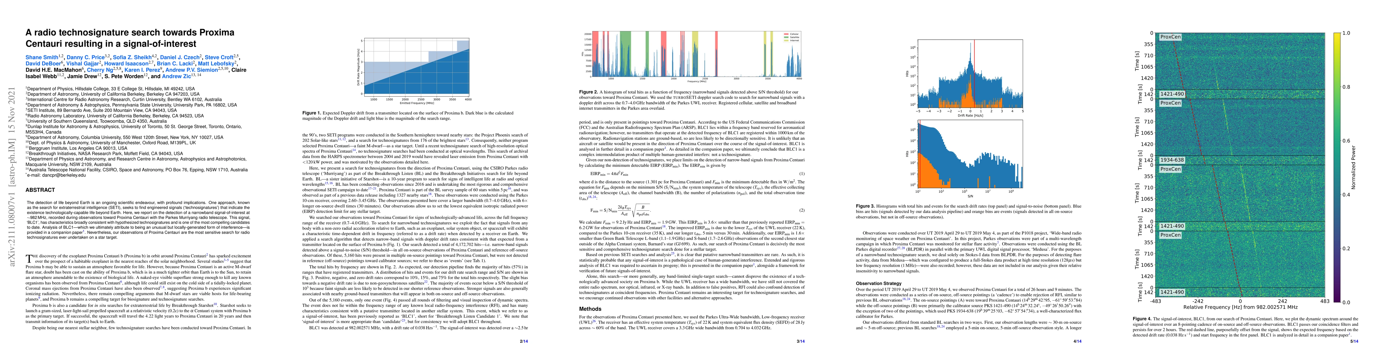 The detection of life beyond Earth is an ongoing scientific endeavour, with profound implications. One approach, known as the search for extraterrestrial intelligence (SETI), seeks to find engineered signals (`technosignatures') that indicate the existence technologically-capable life beyond Earth. Here, we report on the detection of a narrowband signal-of-interest at ~982 MHz, recorded during observations toward Proxima Centauri with the Parkes Murriyang radio telescope. This signal, `BLC1', has characteristics broadly consistent with hypothesized technosignatures and is one of the most compelling candidates to date. Analysis of BLC1 -- which we ultimately attribute to being an unusual but locally-generated form of interference -- is provided in a companion paper (Sheikh et al., 2021). Nevertheless, our observations of Proxima Centauri are the most sensitive search for radio technosignatures ever undertaken on a star target.