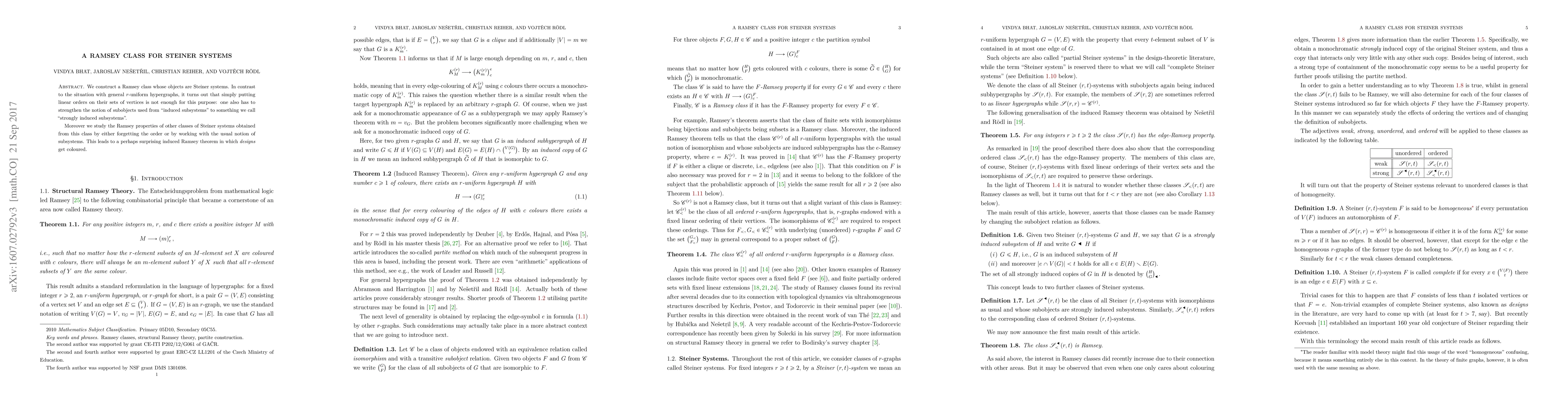 This paper constructs a Ramsey class for Steiner systems, enhancing the notion of subobjects to "strongly induced subsystems" beyond linear orders. It further investigates the Ramsey properties of derived Steiner systems, leading to an unexpected induced Ramsey theorem applicable to colored designs.