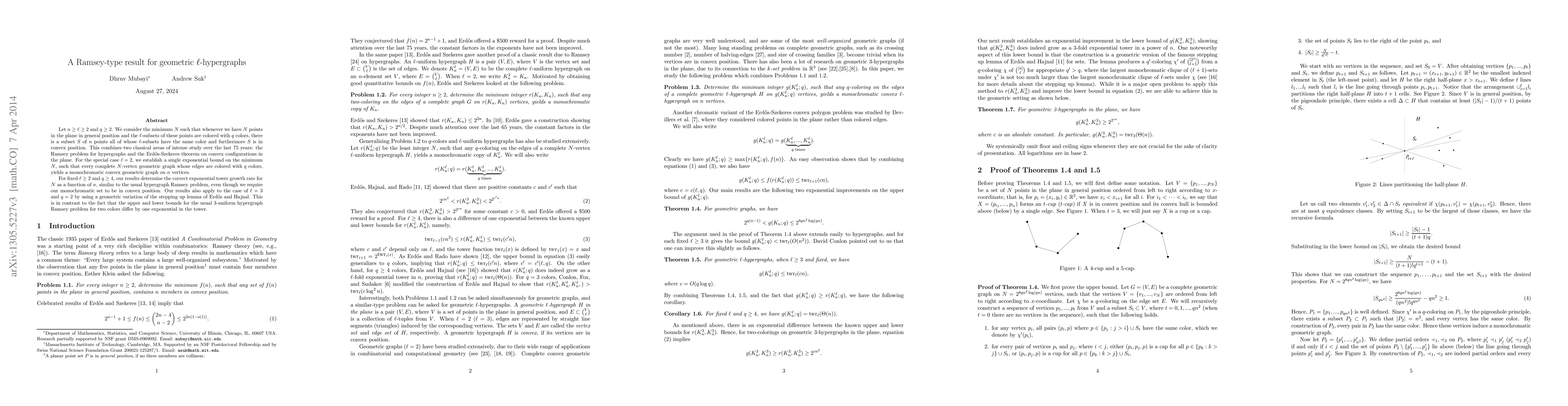 Let n \geq l \geq 2 and q \geq 2. We consider the minimum N such that whenever we have N points in the plane in general position and the l-subsets of these points are colored with q colors, there is a subset S of n points all of whose l-subsets have the same color and furthermore S is in convex position. This combines two classical areas of intense study over the last 75 years: the Ramsey problem for hypergraphs and the Erd\H os-Szekeres theorem on convex configurations in the plane. For the special case l = 2, we establish a single exponential bound on the minimum N, such that every complete $N$-vertex geometric graph whose edges are colored with q colors, yields a monochromatic convex geometric graph on n vertices. For fixed l \geq 2 and q \geq 4, our results determine the correct exponential tower growth rate for N as a function of n, similar to the usual hypergraph Ramsey problem, even though we require our monochromatic set to be in convex position. Our results also apply to the case of l=3 and q=2 by using a geometric variation of the stepping up lemma of Erd\H os and Hajnal. This is in contrast to the fact that the upper and lower bounds for the usual 3-uniform hypergraph Ramsey problem for two colors differ by one exponential in the tower.