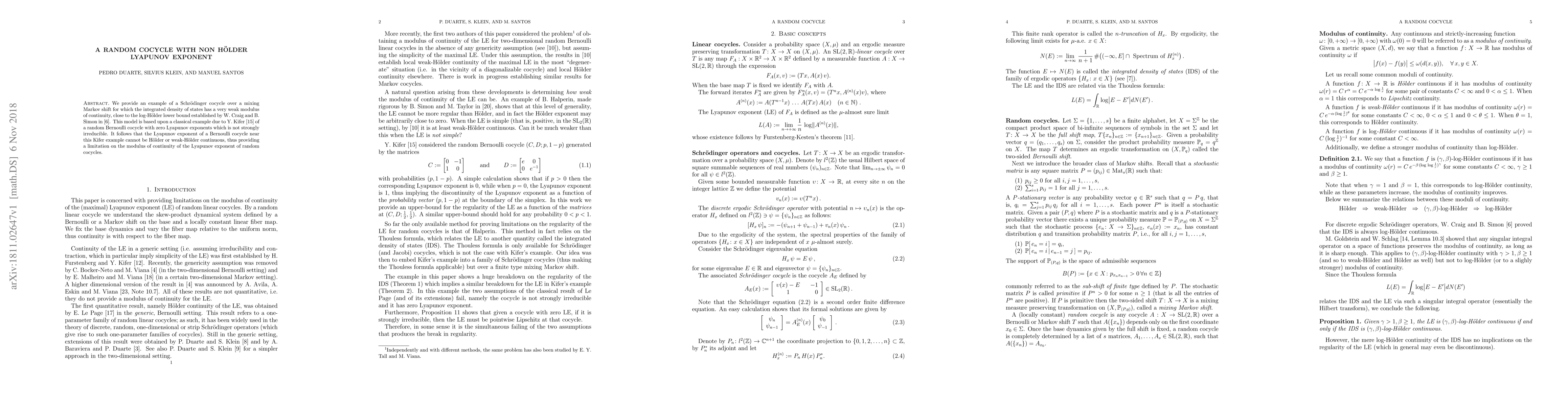 The paper introduces a novel example of a random cocycle demonstrating non-Hölder continuity of Lyapunov exponents, providing insights into the modulus of continuity of the IDS.