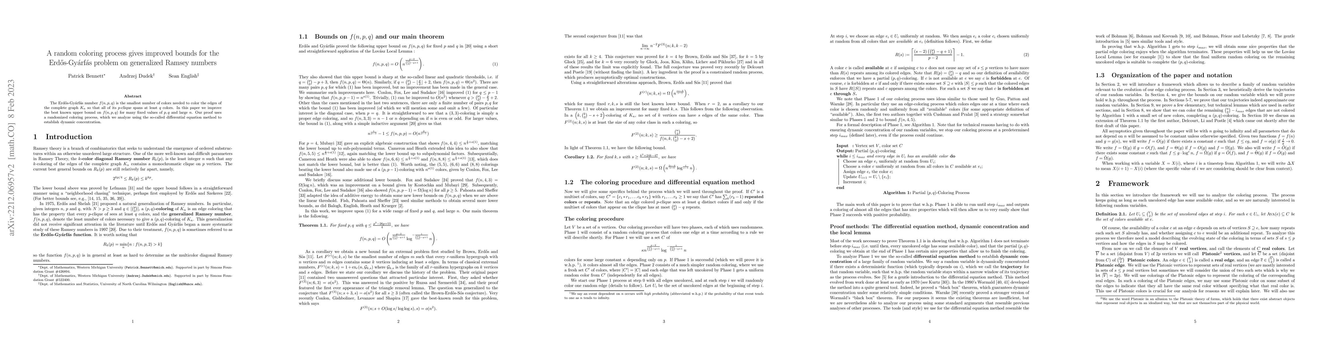 Summary: This paper improves the upper bound for the Erdős-Gyárfás number $f(n, p, q)$ through a randomized coloring process, achieving better results for various fixed values of $p$, $q$, and large $n$, with concentration established via a differential equation method.