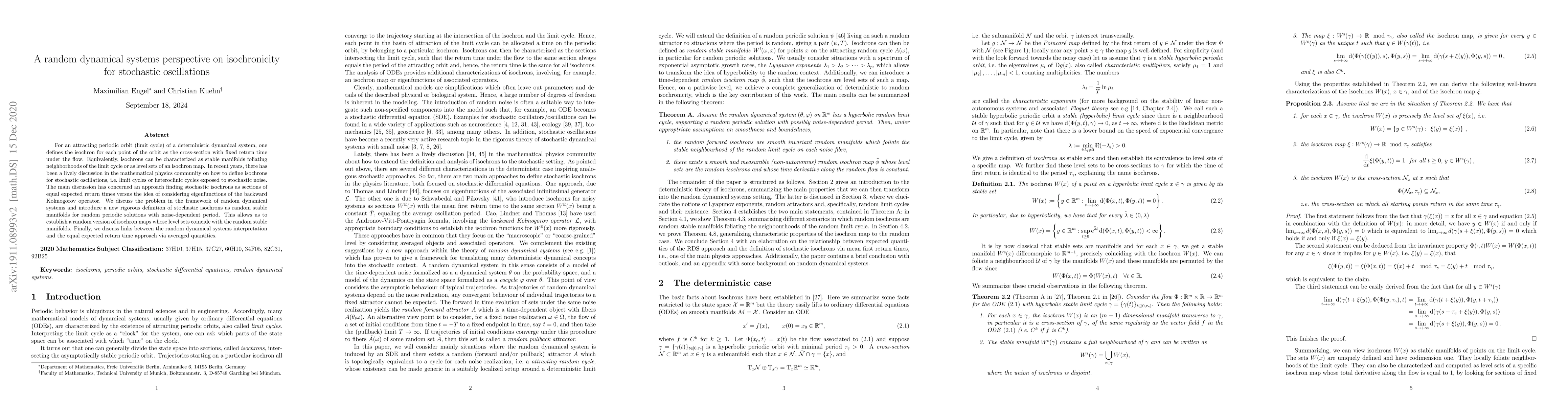 This paper introduces a new definition of stochastic isochrons within random dynamical systems, framing them as random stable manifolds for noisy periodic solutions. It establishes a random isochron map and connects this concept to the equal expected return time approach using averaged quantities.