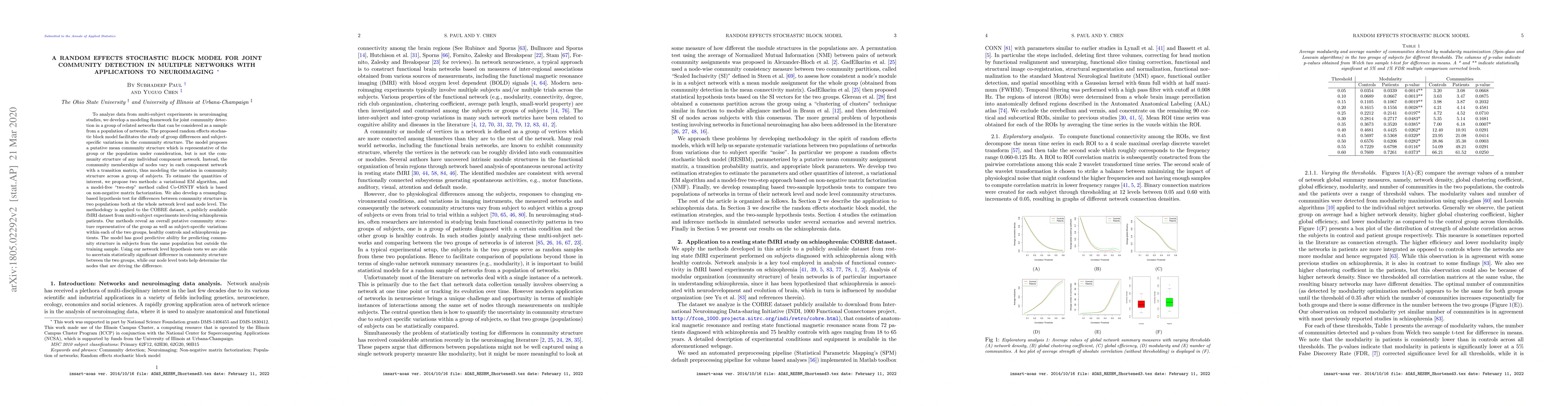 Motivated by multi-subject experiments in neuroimaging studies, we develop a modeling framework for joint community detection in a group of related networks, which can be considered as a sample from a population of networks. The proposed random effects stochastic block model facilitates the study of group differences and subject-specific variations in the community structure. The model proposes a putative mean community structure which is representative of the group or the population under consideration but is not the community structure of any individual component network. Instead, the community memberships of nodes vary in each component network with a transition matrix, thus modeling the variation in community structure across a group of subjects. To estimate the quantities of interest we propose two methods, a variational EM algorithm, and a model-free "two-step" method based on either spectral or non-negative matrix factorization (NMF). Our NMF based method Co-OSNTF is of independent interest and we study its convergence properties to a stationary point. We also develop a resampling-based hypothesis test for differences in community structure in two populations both at the whole network level and node level. The methodology is applied to a publicly available fMRI dataset from multi-subject experiments involving schizophrenia patients. Our methods reveal an overall putative community structure representative of the group as well as subject-specific variations within each group. Using our network level hypothesis tests we are able to ascertain statistically significant difference in community structure between the two groups, while our node level tests help determine the nodes that are driving the difference.