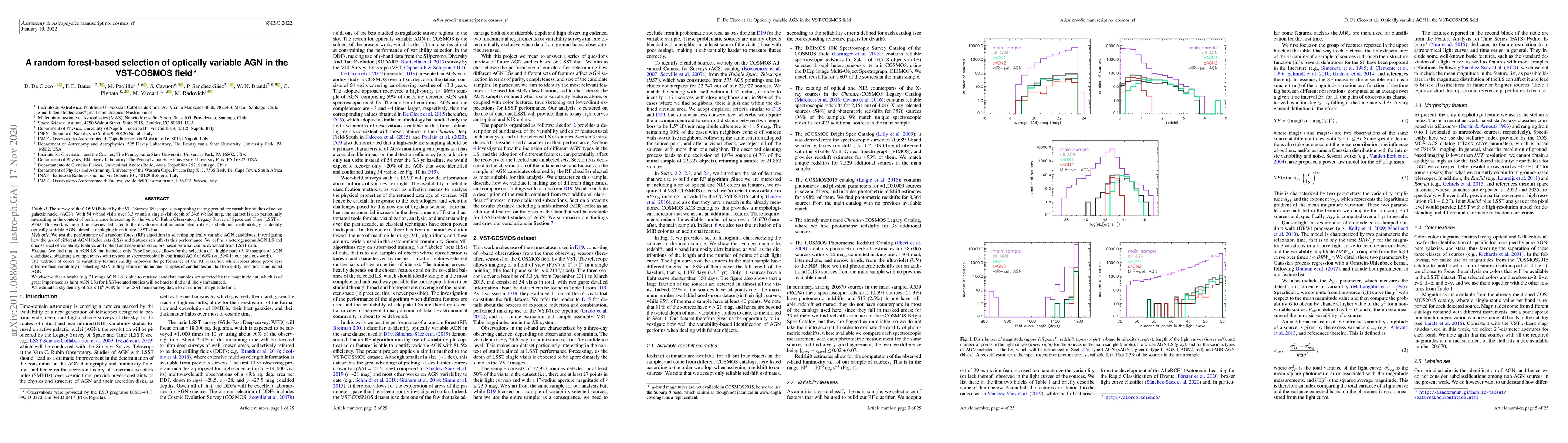 This paper uses a random forest algorithm to identify optically variable active galactic nuclei (AGN) in the COSMOS field, employing a dataset from the VLT Survey Telescope. The study finds that a random forest classifier, enhanced with optical and near-infrared colors, can select AGN candidates with 91% purity and 69% completeness, outperforming previous methods.