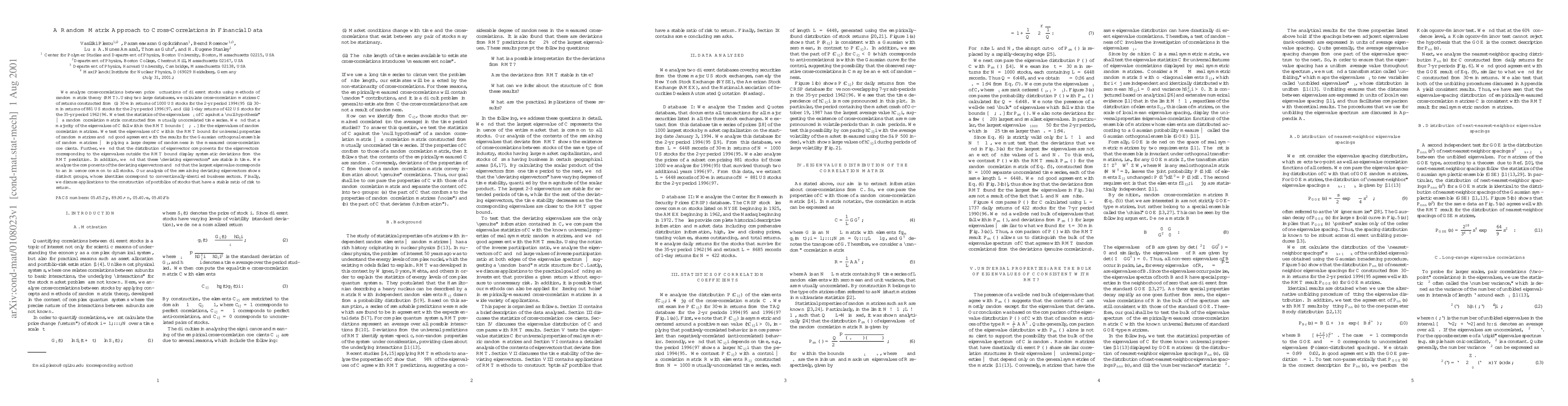 Researchers used random matrix theory to analyze cross-correlations between stock prices, finding that most eigenvalues fell within expected bounds, while some eigenvectors showed systematic deviations that revealed stable patterns of influence and business sector identities.