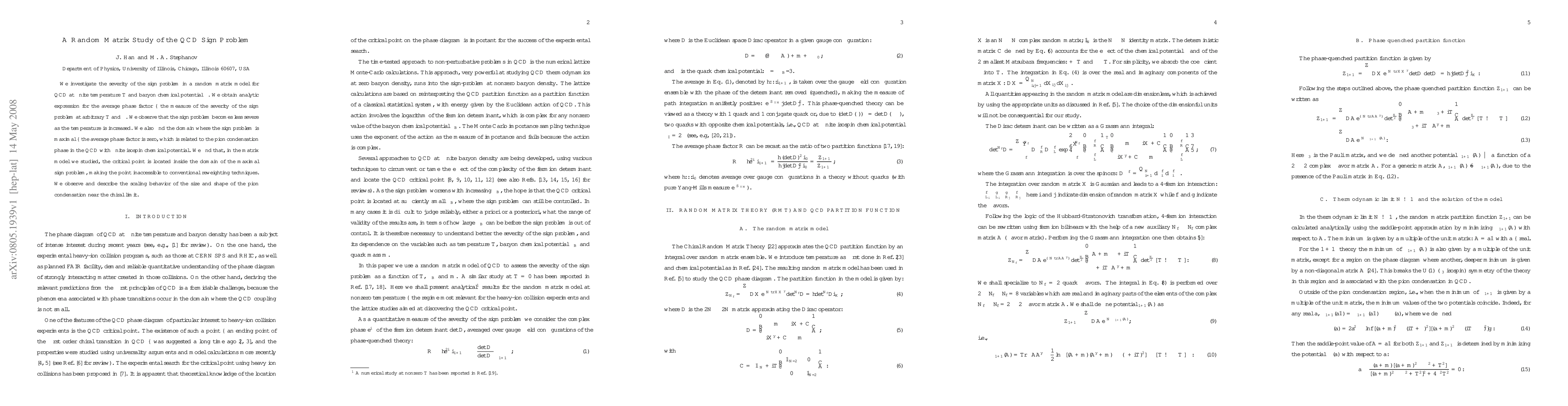 This study uses a random matrix model to analyze the sign problem in Quantum Chromodynamics (QCD) at finite temperature and baryon chemical potential, finding that the problem lessens with increased temperature. The research identifies the critical point where the sign problem is maximal, correlating it with pion condensation, and notes that this point is inaccessible to conventional reweighting techniques.