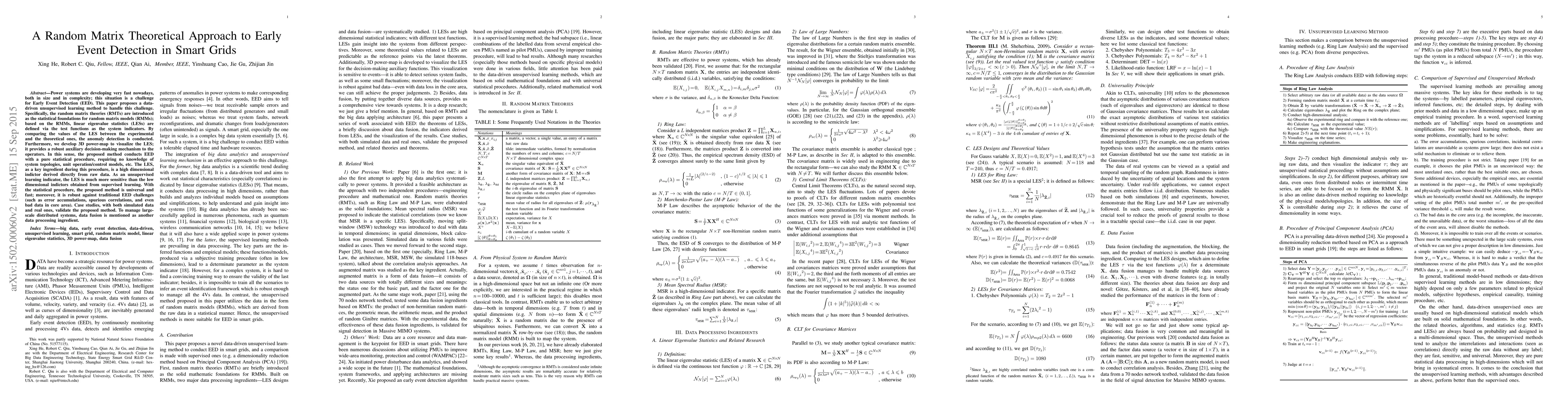 Researchers propose a data-driven method using random matrix theories for early event detection in smart grids, providing an unsupervised learning approach that detects anomalies in power systems.
