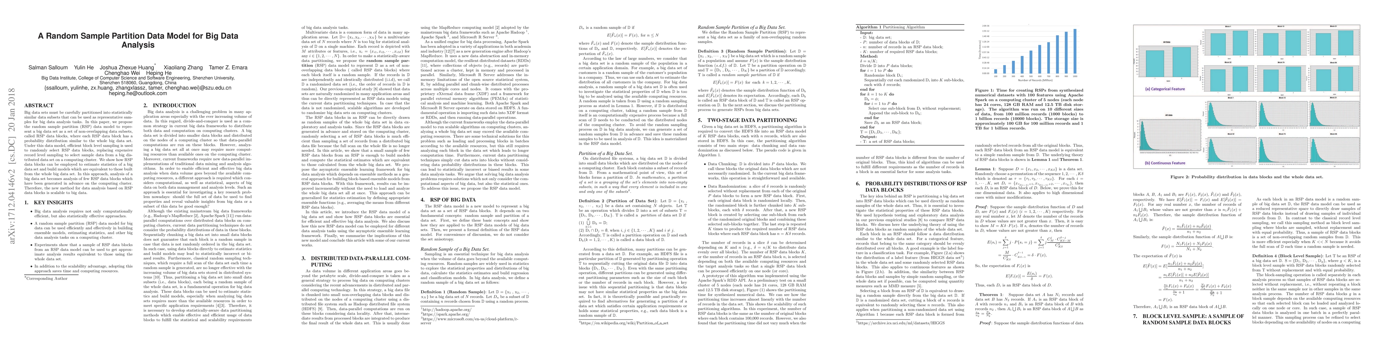 The main technical contribution of this work is the introduction of the Random Sample Partition (RSP) data model and the associated two-staged data partitioning algorithm, enabling efficient block-level sampling for big data analysis.