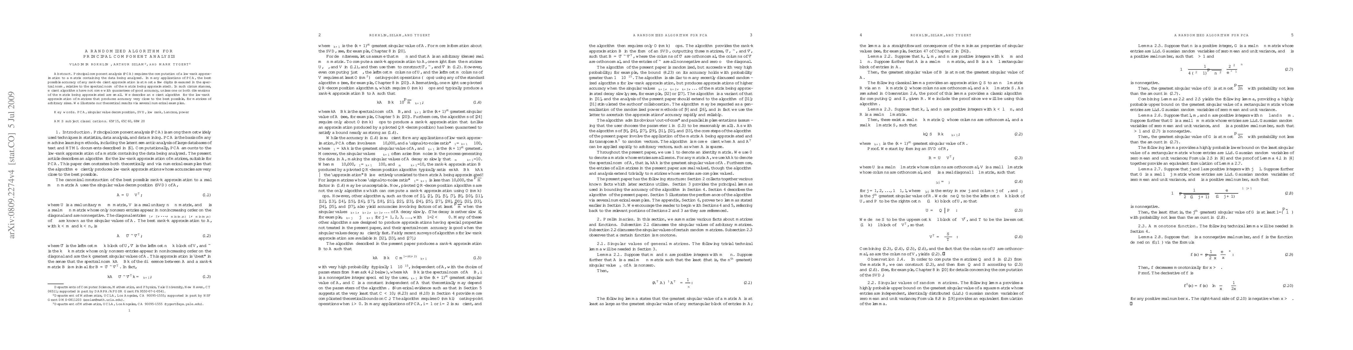 Principal component analysis (PCA) requires the computation of a low-rank approximation to a matrix containing the data being analyzed. In many applications of PCA, the best possible accuracy of any rank-deficient approximation is at most a few digits (measured in the spectral norm, relative to the spectral norm of the matrix being approximated). In such circumstances, efficient algorithms have not come with guarantees of good accuracy, unless one or both dimensions of the matrix being approximated are small. We describe an efficient algorithm for the low-rank approximation of matrices that produces accuracy very close to the best possible, for matrices of arbitrary sizes. We illustrate our theoretical results via several numerical examples.