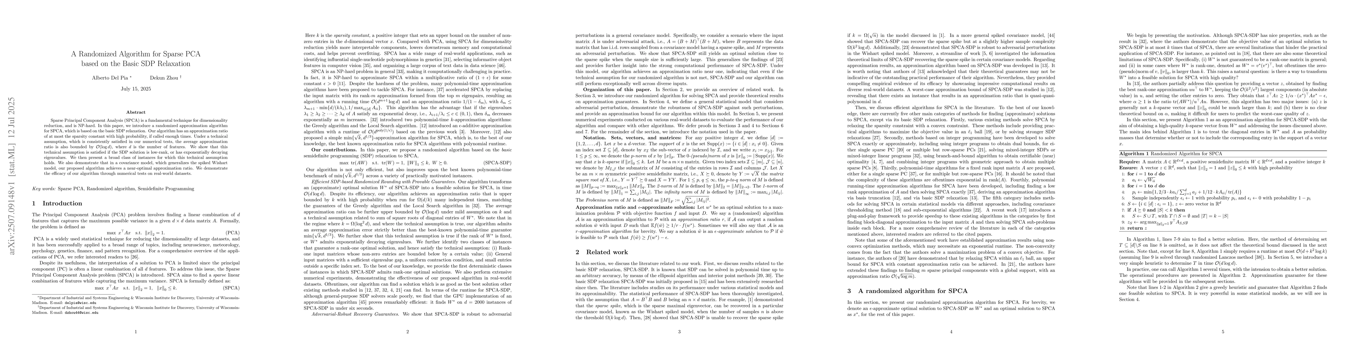 Sparse Principal Component Analysis (SPCA) is a fundamental technique for dimensionality reduction, and is NP-hard. In this paper, we introduce a randomized approximation algorithm for SPCA, which is based on the basic SDP relaxation. Our algorithm has an approximation ratio of at most the sparsity constant with high probability, if called enough times. Under a technical assumption, which is consistently satisfied in our numerical tests, the average approximation ratio is also bounded by $\mathcal{O}(\log{d})$, where $d$ is the number of features. We show that this technical assumption is satisfied if the SDP solution is low-rank, or has exponentially decaying eigenvalues. We then present a broad class of instances for which this technical assumption holds. We also demonstrate that in a covariance model, which generalizes the spiked Wishart model, our proposed algorithm achieves a near-optimal approximation ratio. We demonstrate the efficacy of our algorithm through numerical results on real-world datasets.