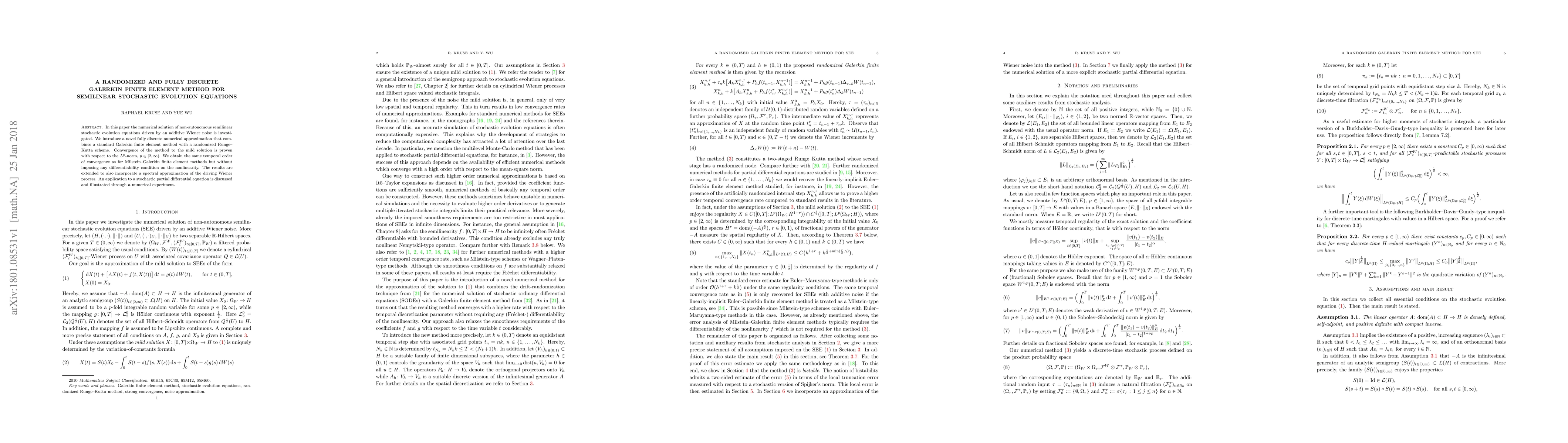In this paper the numerical solution of non-autonomous semilinear stochastic evolution equations driven by an additive Wiener noise is investigated. We introduce a novel fully discrete numerical approximation that combines a standard Galerkin finite element method with a randomized Runge-Kutta scheme. Convergence of the method to the mild solution is proven with respect to the $L^p$-norm, $p \in [2,\infty)$. We obtain the same temporal order of convergence as for Milstein-Galerkin finite element methods but without imposing any differentiability condition on the nonlinearity. The results are extended to also incorporate a spectral approximation of the driving Wiener process. An application to a stochastic partial differential equation is discussed and illustrated through a numerical experiment.