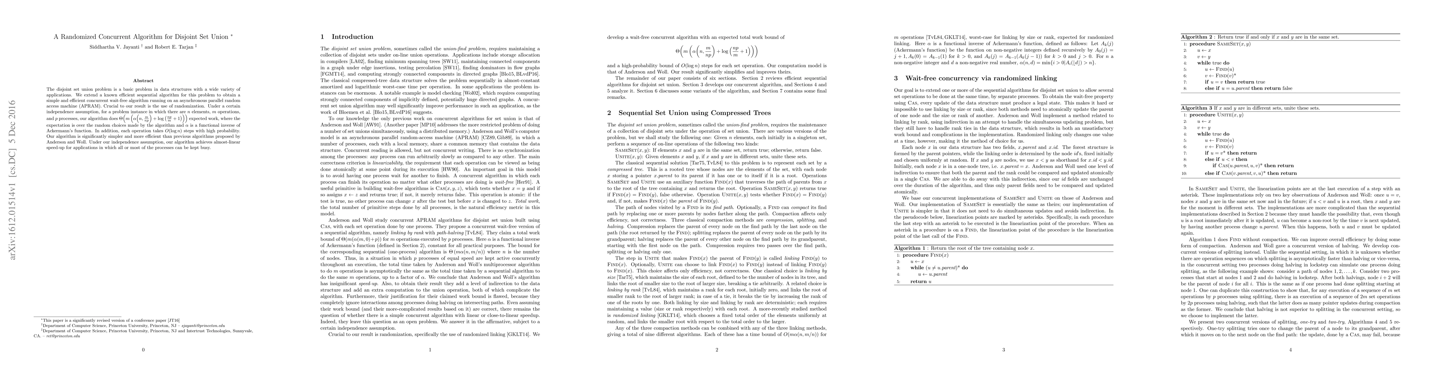 A new concurrent algorithm for the disjoint set union problem has been developed, achieving Theta(m(alpha(n, m/(np)) + log(np/m + 1))) expected work with a simplified approach that leads to almost-linear speed-up in applications where most processes can be kept busy.