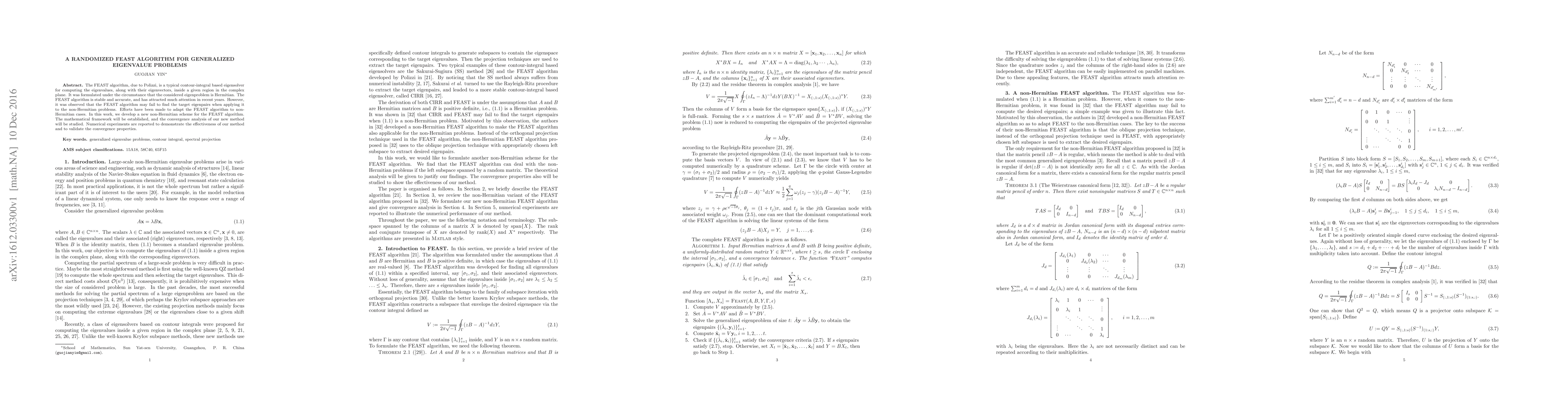 This paper introduces a randomized FEAST algorithm for solving generalized eigenvalue problems in non-Hermitian cases. The new method extends the original FEAST algorithm, which was primarily designed for Hermitian problems, by establishing a mathematical framework and analyzing its convergence, validated through numerical experiments.