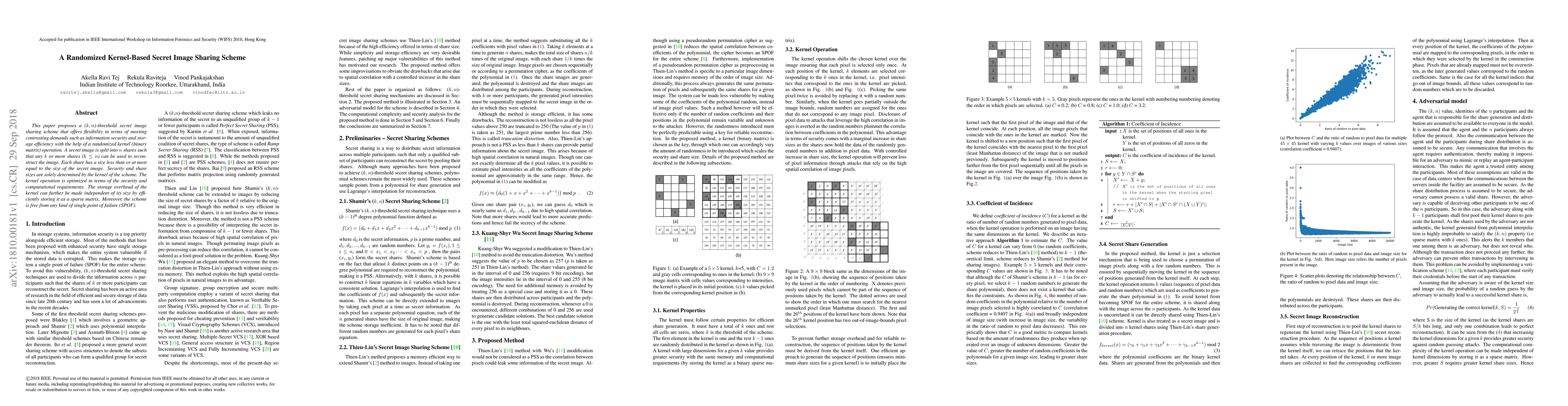 A new secret image sharing scheme is proposed, offering flexible information security and storage efficiency through a randomized kernel operation. The scheme allows for reconstructing an image with any k or more shares, while minimizing storage overhead and eliminating single points of failure.