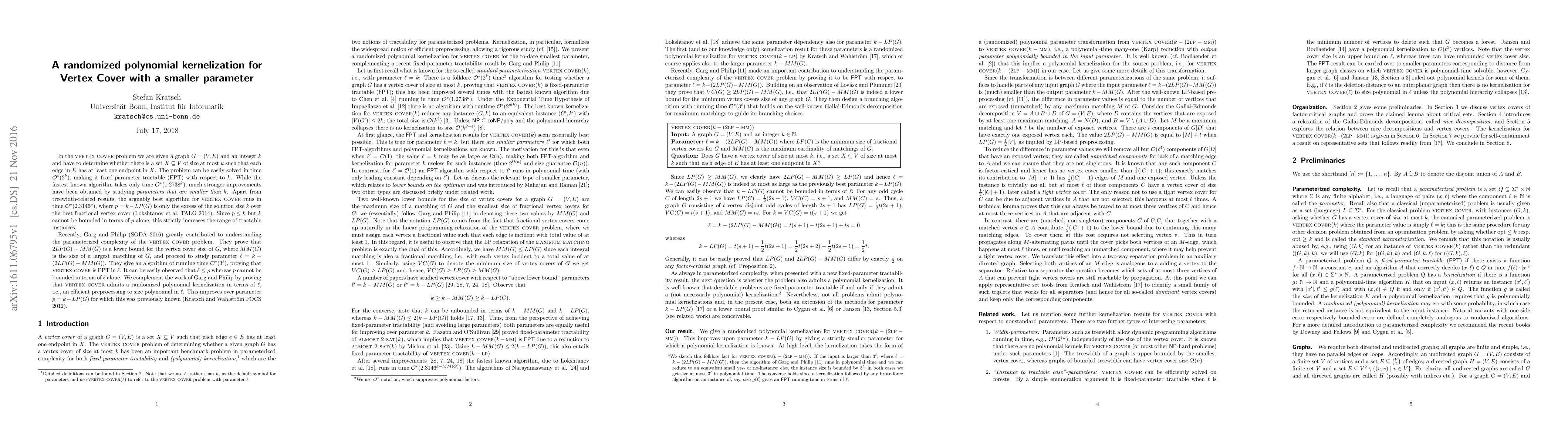 Researchers have developed a randomized polynomial kernelization for Vertex Cover, improving over existing parameterizations and enabling faster solutions for certain instances of the problem.