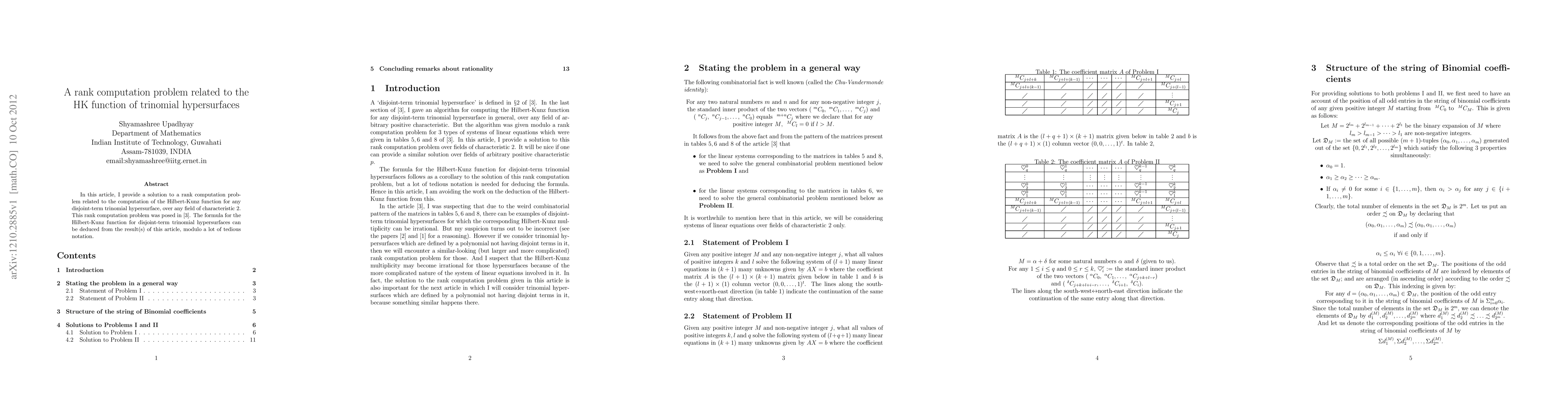 Researchers solved a rank computation problem for trinomial hypersurfaces, providing a formula for the Hilbert-Kunz function in characteristic 2, which can be used to compute its value for any disjoint-term trinomial hypersurface.