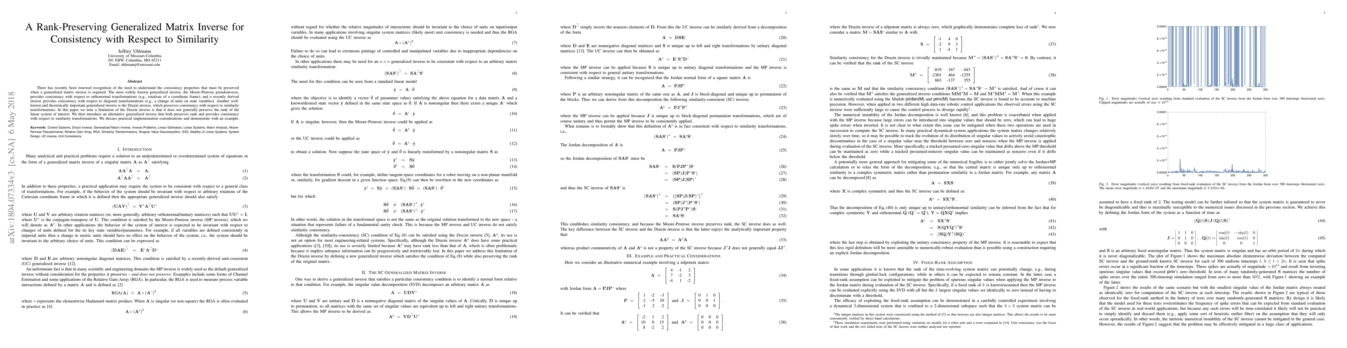 This paper introduces a new generalized matrix inverse that preserves rank and maintains consistency with respect to similarity transformations, addressing the limitation of the Drazin inverse. It also discusses the necessity for algorithms with improved numerical stability.