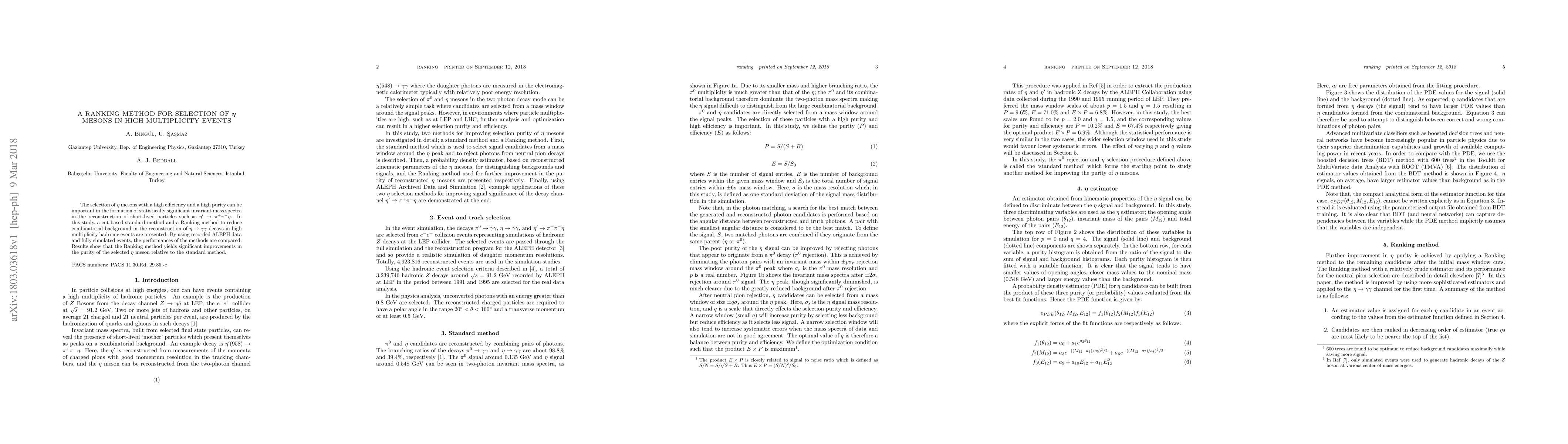 This paper presents a Ranking method to enhance the selection of $\eta$ mesons in high multiplicity events, achieving higher purity compared to a standard cut-based method. The Ranking method significantly reduces combinatorial background in the reconstruction of $\eta \rightarrow \gamma \gamma$ decays, as demonstrated using ALEPH data and simulated events.