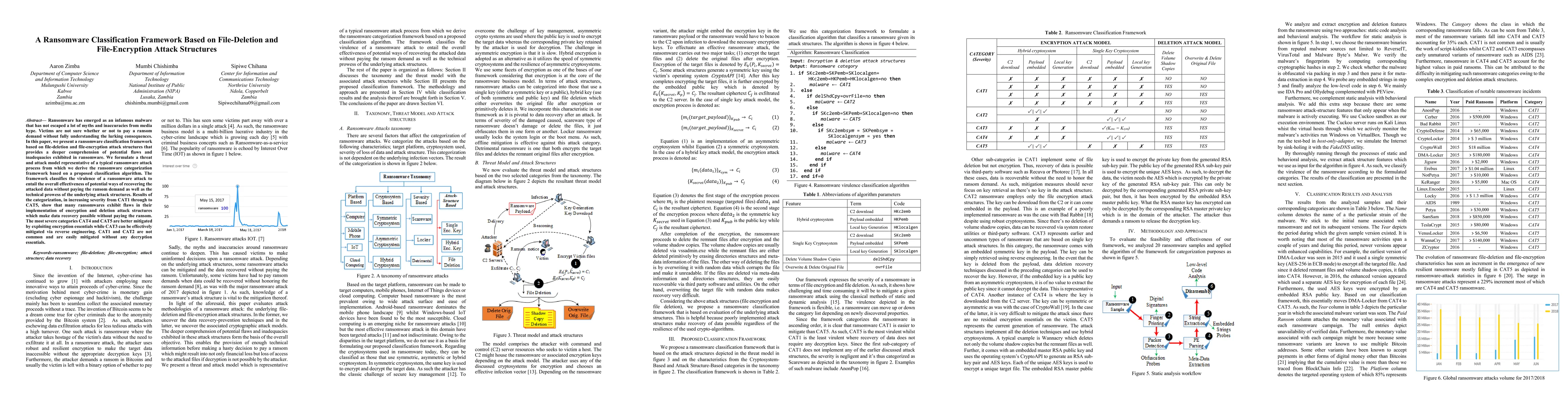 This paper introduces a ransomware classification framework based on file-deletion and file-encryption attack structures, aiming to enhance understanding of ransomware vulnerabilities. The framework categorizes ransomware from CAT1 to CAT5, revealing that many ransomwares have flaws that allow data recovery without paying the ransom, with more severe categories requiring specific mitigation techniques.