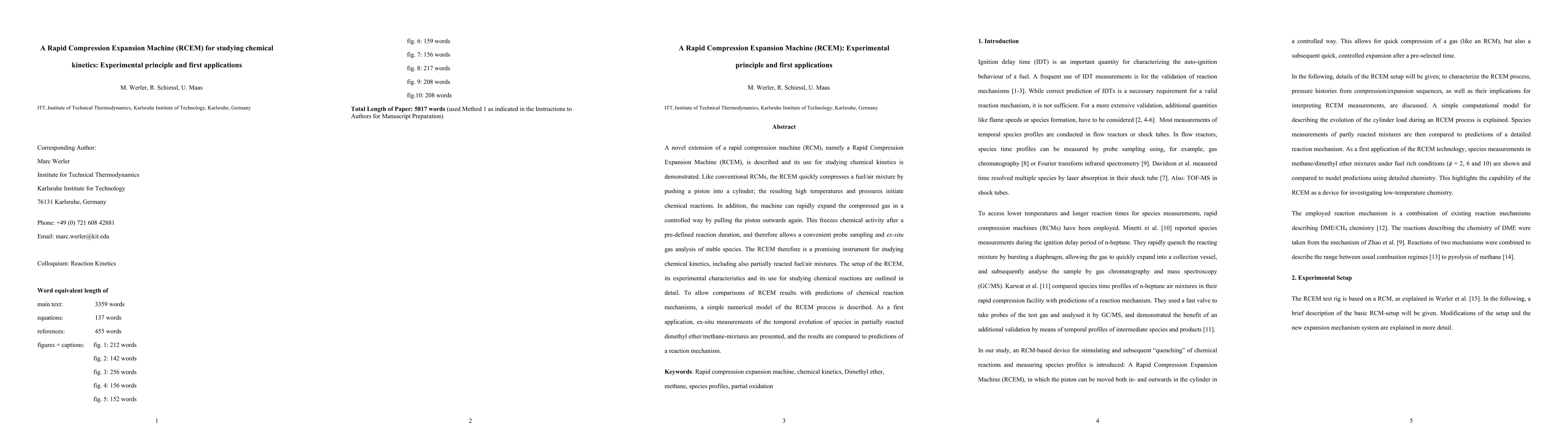 A novel extension of a rapid compression machine (RCM), namely a Rapid Compression Expansion Machine (RCEM), is described and its use for studying chemical kinetics is demonstrated. Like conventional RCMs, the RCEM quickly compresses a fuel/air mixture by pushing a piston into a cylinder; the resulting high temperatures and pressures initiate chemical reactions. In addition, the machine can rapidly expand the compressed gas in a controlled way by pulling the piston outwards again. This freezes chemical activity after a pre-defined reaction duration, and therefore allows a convenient probe sampling and ex-situ gas analysis of stable species. The RCEM therefore is a promising instrument for studying chemical kinetics, including also partially reacted fuel/air mixtures. The setup of the RCEM, its experimental characteristics and its use for studying chemical reactions are outlined in detail. To allow comparisons of RCEM results with predictions of chemical reaction mechanisms, a simple numerical model of the RCEM process is described. As a first application, ex-situ measurements of the temporal evolution of species in partially reacted dimethyl ether/methane-mixtures are presented, and the results are compared to predictions of a reaction mechanism.