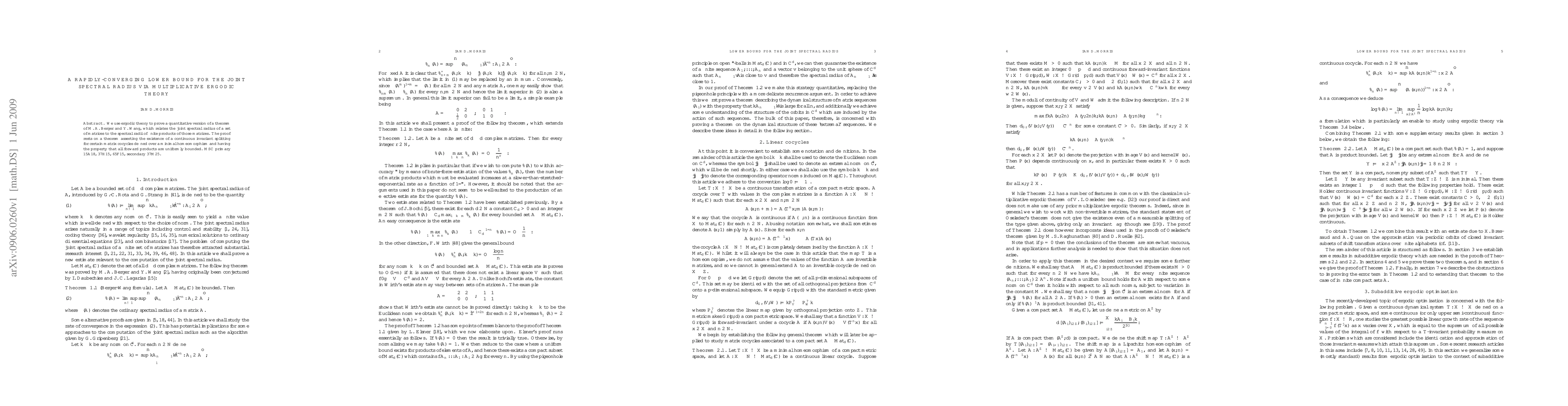 Summary: The paper employs multiplicative ergodic theory to establish a rapidly-converging lower bound for the joint spectral radius of matrices, building on a theorem by Berger and Wang, and leveraging the existence of a continuous invariant splitting for matrix cocycles under a minimal homeomorphism.