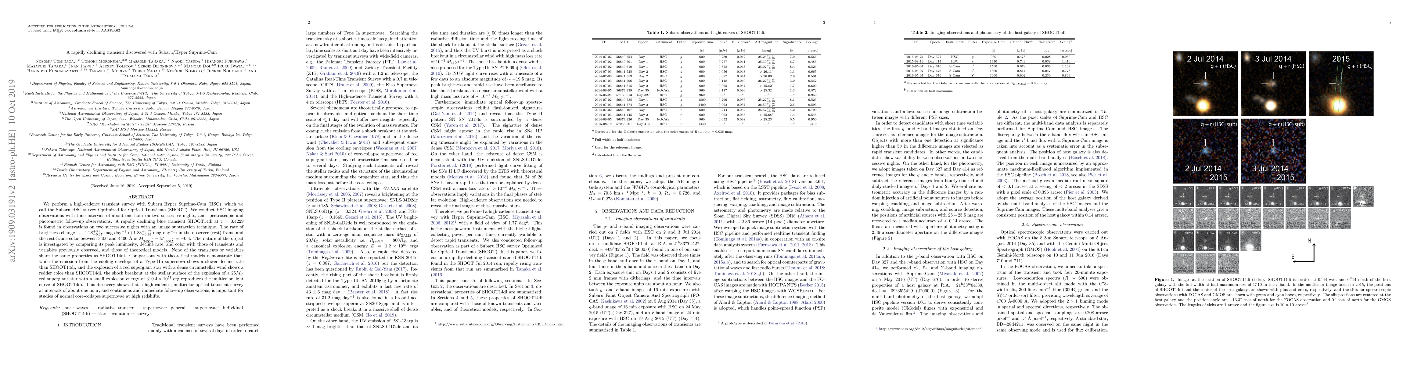 This paper reports the discovery of SHOOT14di, a rapidly declining blue transient found in the Subaru HSC survey. The transient's unique properties suggest it may represent a shock breakout from a low-energy explosion of a red supergiant star, highlighting the importance of high-cadence surveys for studying core-collapse supernovae.