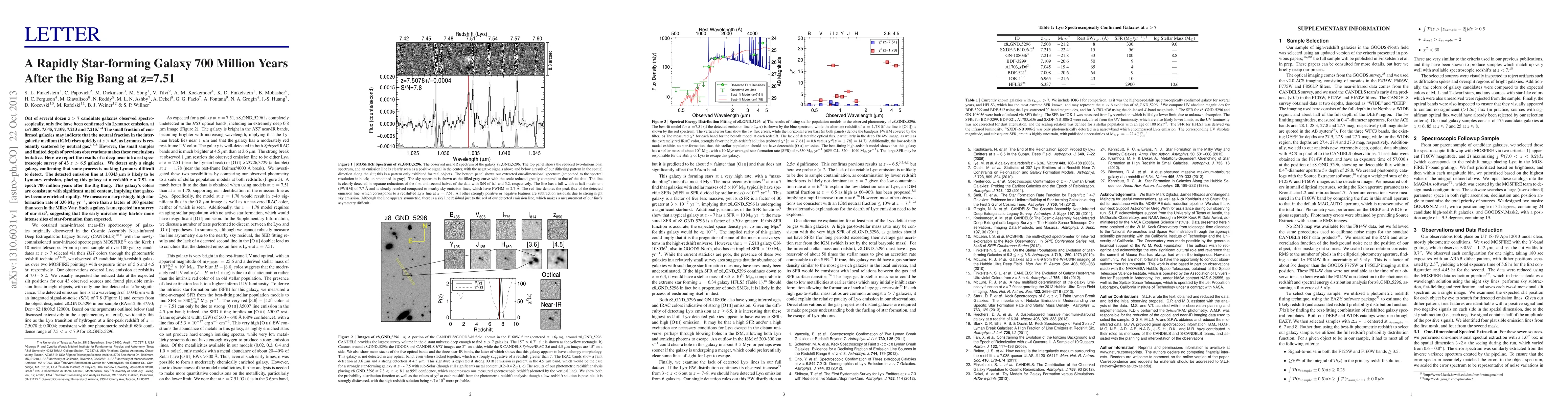 This paper reports the discovery of a rapidly star-forming galaxy 700 million years after the Big Bang at a redshift of z = 7.51, characterized by a high star formation rate of 330 Msol/yr. The galaxy's metal-rich colors suggest rapid enrichment, indicating the early universe may host more intense star-formation sites than previously anticipated.