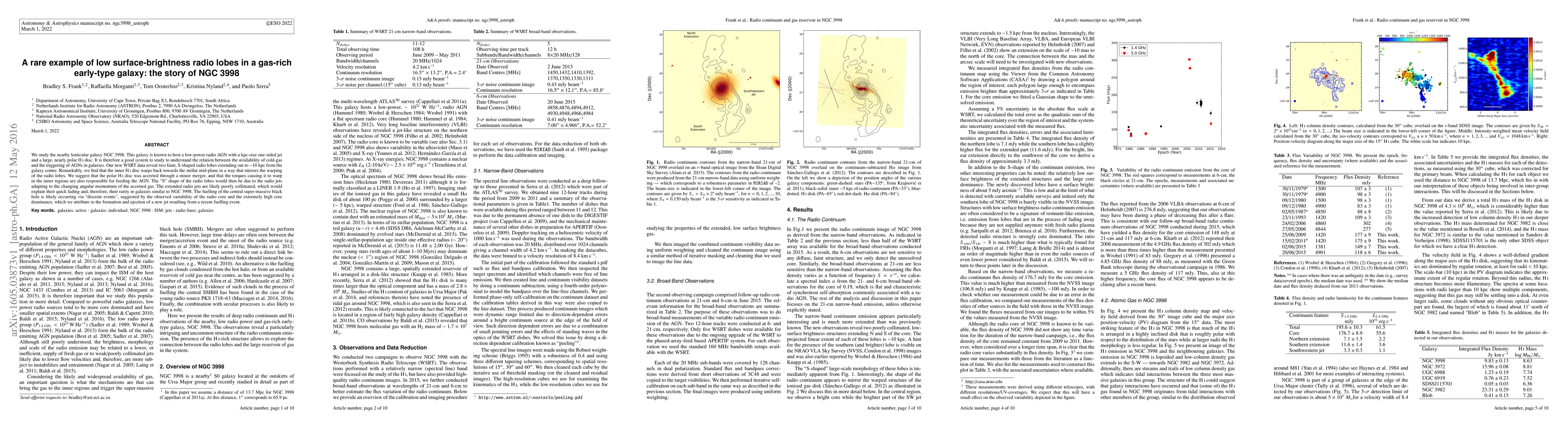 We study the nearby lenticular galaxy NGC 3998. This galaxy is known to host a low-power radio AGN with a kpc-size one-sided jet and a large, nearly polar HI disc. It is therefore a good system to study to understand the relation between the availability of cold-gas and the triggering of AGNs in galaxies. Our new WSRT data reveal two faint, S-shaped radio lobes extending out to $\sim$10 kpc from the galaxy centre. Remarkably, we find that the inner HI disc warps back towards the stellar mid-plane in a way that mirrors the warping of the radio lobes. We suggest that the polar HI disc was accreted through a minor merger, and that the torques causing it to warp in the inner regions are also responsible for feeding the AGN. The "S" shape of the radio lobes would then be due to the radio jets adapting to the changing angular momentum of the accreted gas. The extended radio jets are likely poorly collimated, which would explain their quick fading and, therefore, their rarity in galaxies similar to NGC 3998. The fuelling of the central super-massive black hole is likely occurring via "discrete events", suggested by the observed variability of the radio core and the extremely high core dominance, which we attribute to the formation and ejection of a new jet resulting from a recent fuelling event.