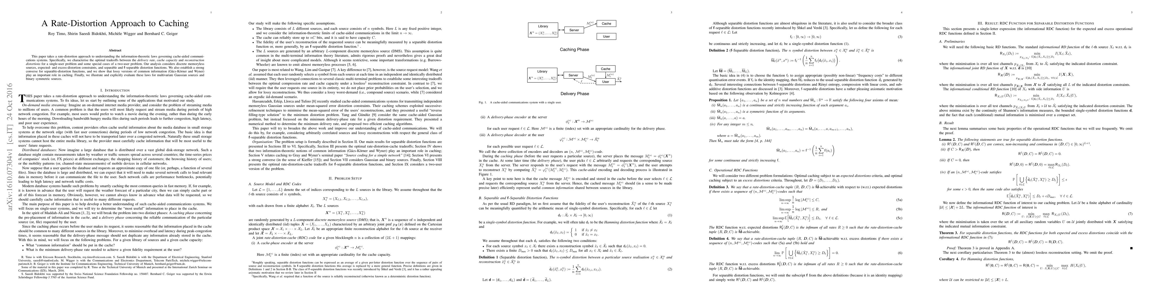 This paper takes a rate-distortion approach to understanding the information-theoretic laws governing cache-aided communications systems. Specifically, we characterise the optimal tradeoffs between the delivery rate, cache capacity and reconstruction distortions for a single-user problem and some special cases of a two-user problem. Our analysis considers discrete memoryless sources, expected- and excess-distortion constraints, and separable and f-separable distortion functions. We also establish a strong converse for separable-distortion functions, and we show that lossy versions of common information (G\'{a}cs-K\"{o}rner and Wyner) play an important role in caching. Finally, we illustrate and explicitly evaluate these laws for multivariate Gaussian sources and binary symmetric sources.