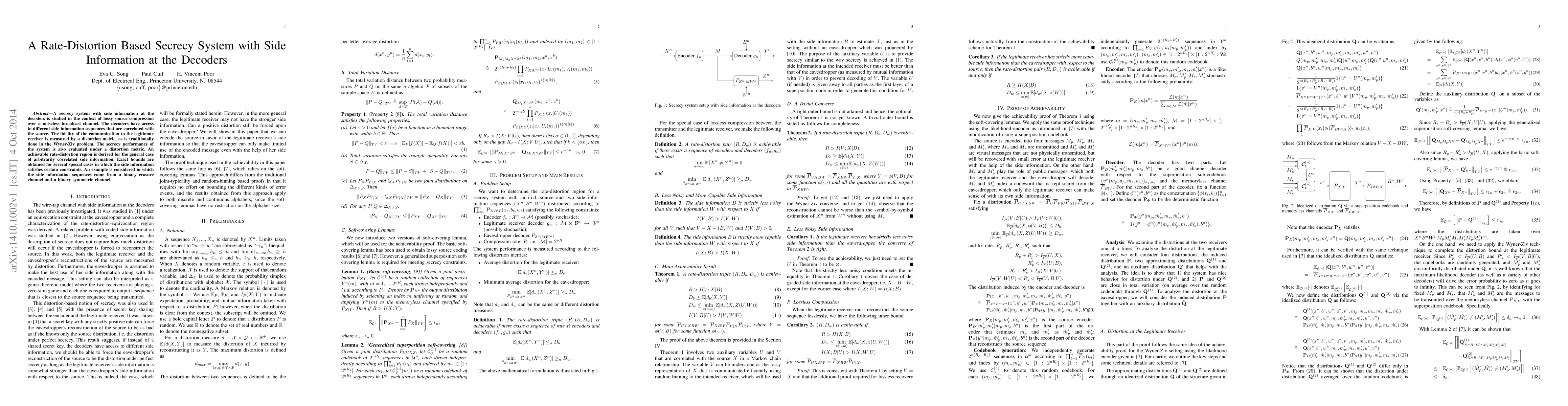 This paper studies a secrecy system with side information at decoders over a noiseless broadcast channel, focusing on lossy source compression. It derives an achievable rate-distortion region for correlated side information and provides exact bounds for special cases, including scenarios with binary erasure and symmetric channels.