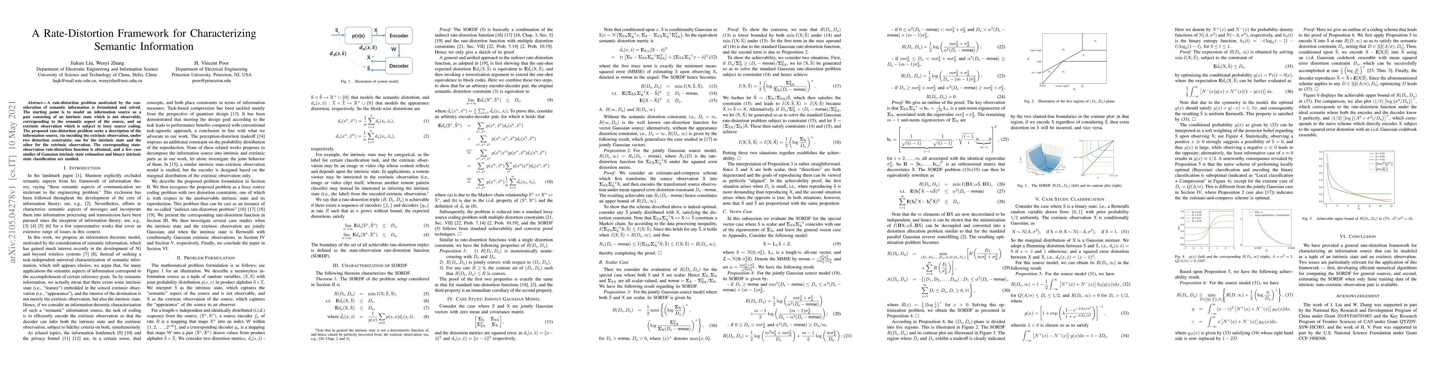 This paper formulates and solves a rate-distortion problem to characterize semantic information, modeling an information source with an unobservable intrinsic state and a lossy extrinsic observation. The study derives the state-observation rate-distortion function and explores case studies involving Gaussian and binary intrinsic state estimation.
