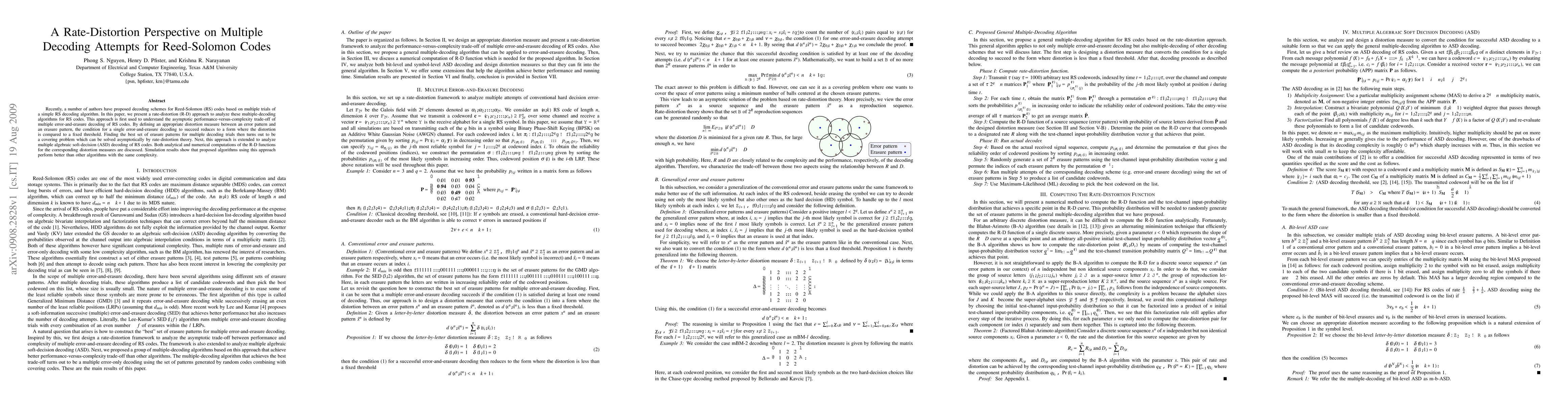 Recently, a number of authors have proposed decoding schemes for Reed-Solomon (RS) codes based on multiple trials of a simple RS decoding algorithm. In this paper, we present a rate-distortion (R-D) approach to analyze these multiple-decoding algorithms for RS codes. This approach is first used to understand the asymptotic performance-versus-complexity trade-off of multiple error-and-erasure decoding of RS codes. By defining an appropriate distortion measure between an error pattern and an erasure pattern, the condition for a single error-and-erasure decoding to succeed reduces to a form where the distortion is compared to a fixed threshold. Finding the best set of erasure patterns for multiple decoding trials then turns out to be a covering problem which can be solved asymptotically by rate-distortion theory. Next, this approach is extended to analyze multiple algebraic soft-decision (ASD) decoding of RS codes. Both analytical and numerical computations of the R-D functions for the corresponding distortion measures are discussed. Simulation results show that proposed algorithms using this approach perform better than other algorithms with the same complexity.