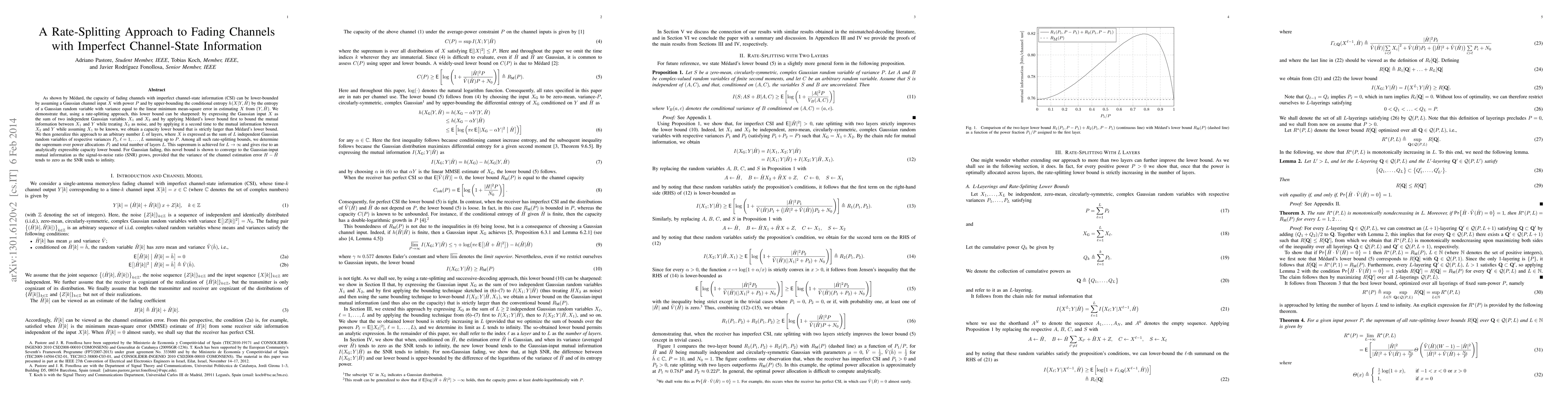 This paper proposes a rate-splitting approach to improve the lower bound on the capacity of fading channels with imperfect channel-state information (CSI). By decomposing the Gaussian input into multiple layers, the authors derive a capacity lower bound that is strictly larger than previous bounds, achieving the supremum for an infinite number of layers.