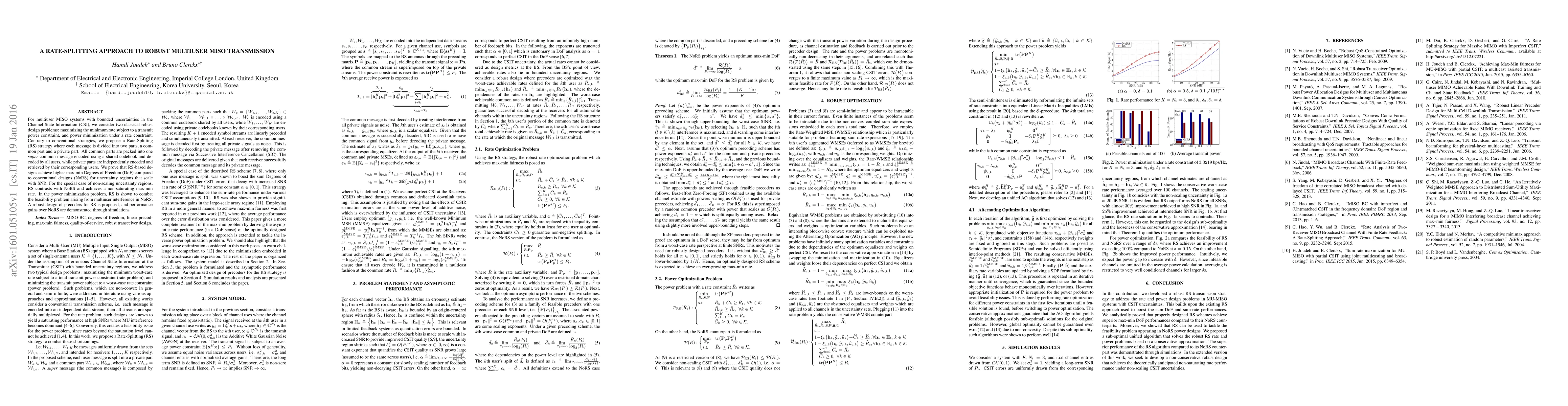This paper proposes a Rate-Splitting strategy for robust multiuser MISO transmission to address uncertainties in Channel State Information, achieving higher max-min Degrees of Freedom and better power minimization compared to conventional designs. Simulation results demonstrate performance gains.