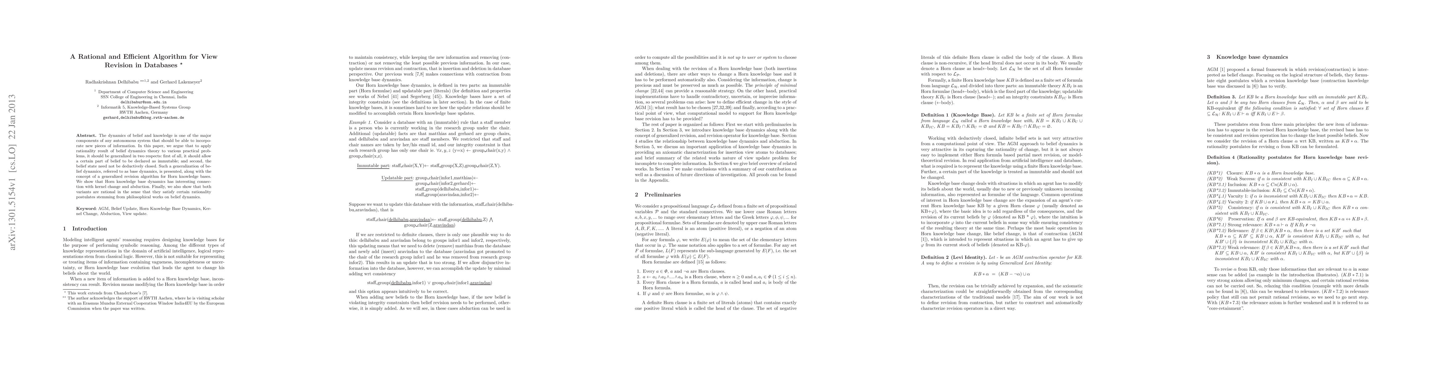 The dynamics of belief and knowledge is one of the major components of any autonomous system that should be able to incorporate new pieces of information. In this paper, we argue that to apply rationality result of belief dynamics theory to various practical problems, it should be generalized in two respects: first of all, it should allow a certain part of belief to be declared as immutable; and second, the belief state need not be deductively closed. Such a generalization of belief dynamics, referred to as base dynamics, is presented, along with the concept of a generalized revision algorithm for Horn knowledge bases. We show that Horn knowledge base dynamics has interesting connection with kernel change and abduction. Finally, we also show that both variants are rational in the sense that they satisfy certain rationality postulates stemming from philosophical works on belief dynamics.