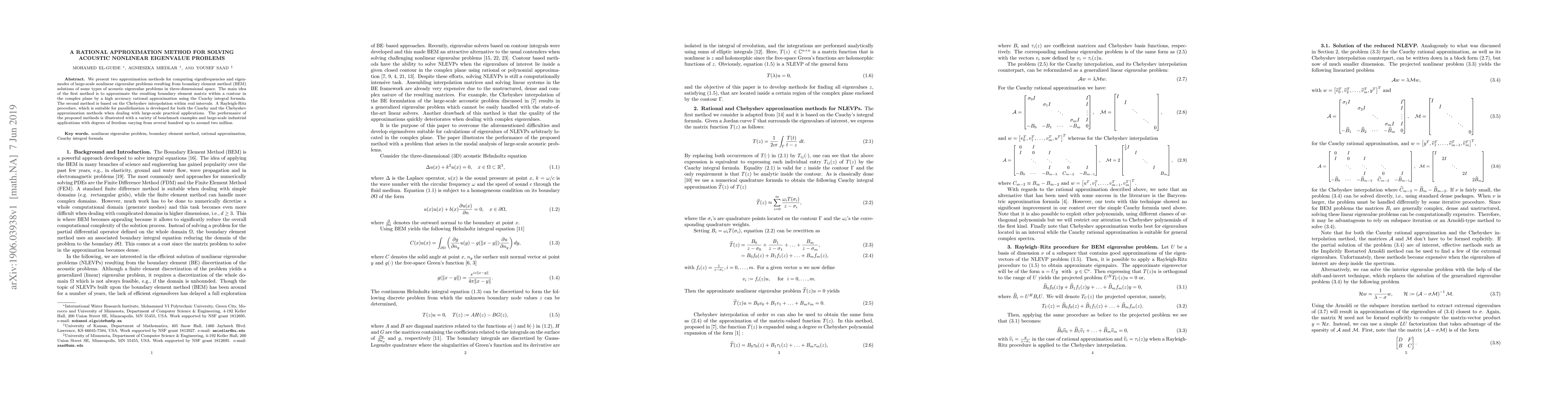 This paper introduces two methods for solving large-scale nonlinear acoustic eigenvalue problems: a rational approximation using the Cauchy integral formula and a Chebyshev interpolation method. Both methods are enhanced with a parallelizable Rayleigh-Ritz procedure and demonstrated through various benchmark examples and industrial applications.