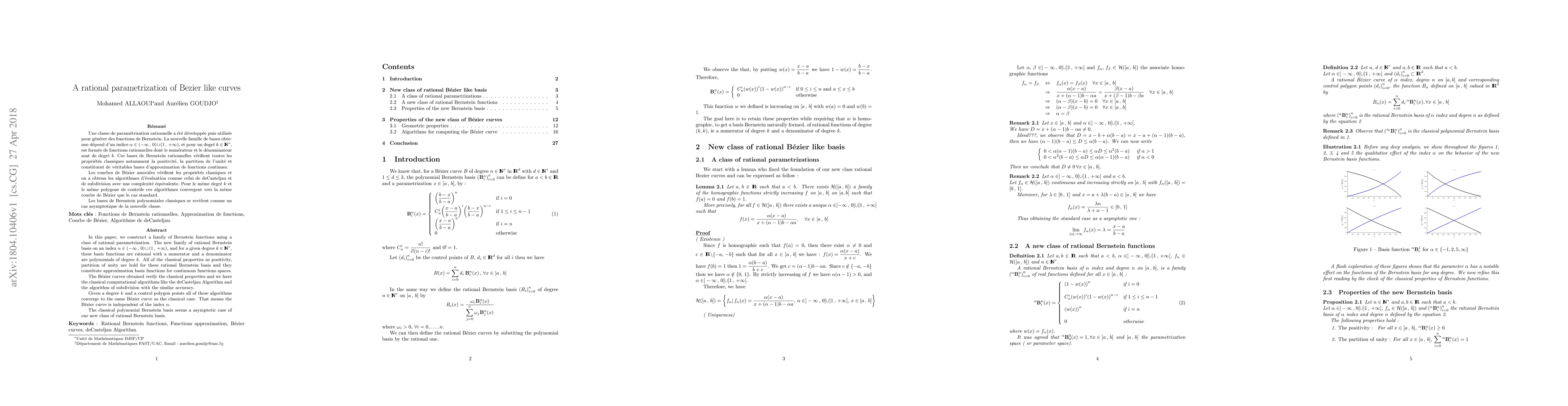 In this paper, we construct a family of Bernstein functions using a class of rational parametrization. The new family of rational Bernstein basis on an index $\alpha \in {\left(-\infty \, , \, 0 \right)}\cup {\left(1 \, , \, +\infty\right)}$, and for a given degree $k\in \mathbb{N}^*$, these basis functions are rational with a numerator and a denominator are polynomials of degree k. All of the classical properties as positivity, partition of unity are hold for these rational Bernstein basis and they constitute approximation basis functions for continuous functions spaces. The B\'ezier curves obtained verify the classical properties and we have the classical computational algorithms like the deCasteljau Algorithm and the algorithm of subdivision with the similar accuracy. Given a degree k and a control polygon points all of these algorithms converge to the same B\'ezier curve as the classical case. That means the B\'ezier curve is independent of the index $\alpha$. The classical polynomial Bernstein basis seems a asymptotic case of our new class of rational Bernstein basis.