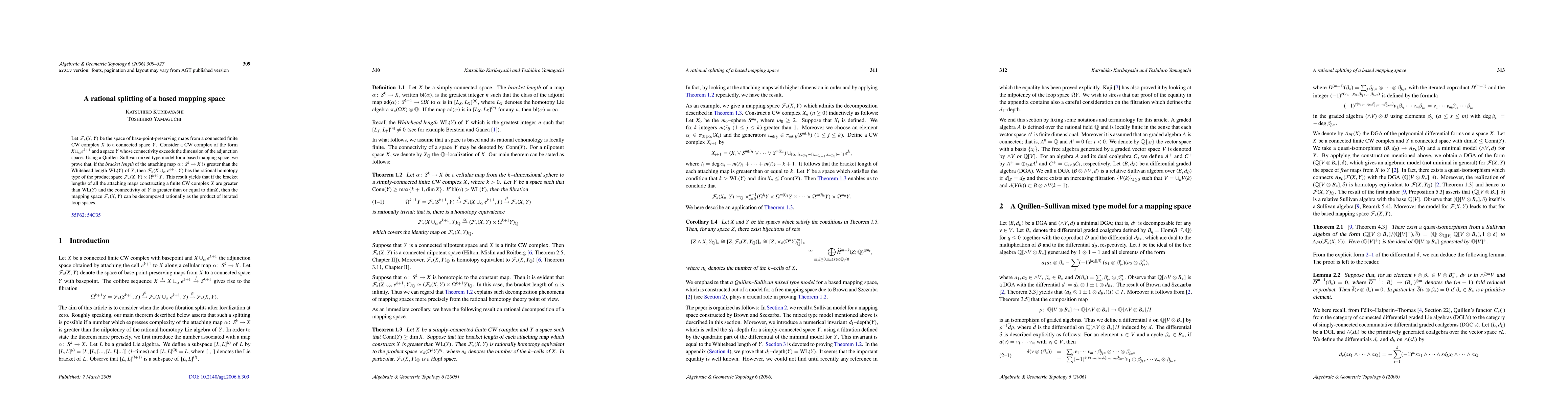 Let F_*(X, Y) be the space of base-point-preserving maps from a connected finite CW complex X to a connected space Y. Consider a CW complex of the form X cup_{alpha}e^{k+1} and a space Y whose connectivity exceeds the dimension of the adjunction space. Using a Quillen-Sullivan mixed type model for a based mapping space, we prove that, if the bracket length of the attaching map alpha: S^k --> X is greater than the Whitehead length WL(Y) of Y, then F_*(X cup_{alpha}e^{k+1}, Y) has the rational homotopy type of the product space F_*(X, Y) times Omega^{k+1}Y. This result yields that if the bracket lengths of all the attaching maps constructing a finite CW complex X are greater than WL(Y) and the connectivity of Y is greater than or equal to dim X, then the mapping space F_*(X, Y) can be decomposed rationally as the product of iterated loop spaces.