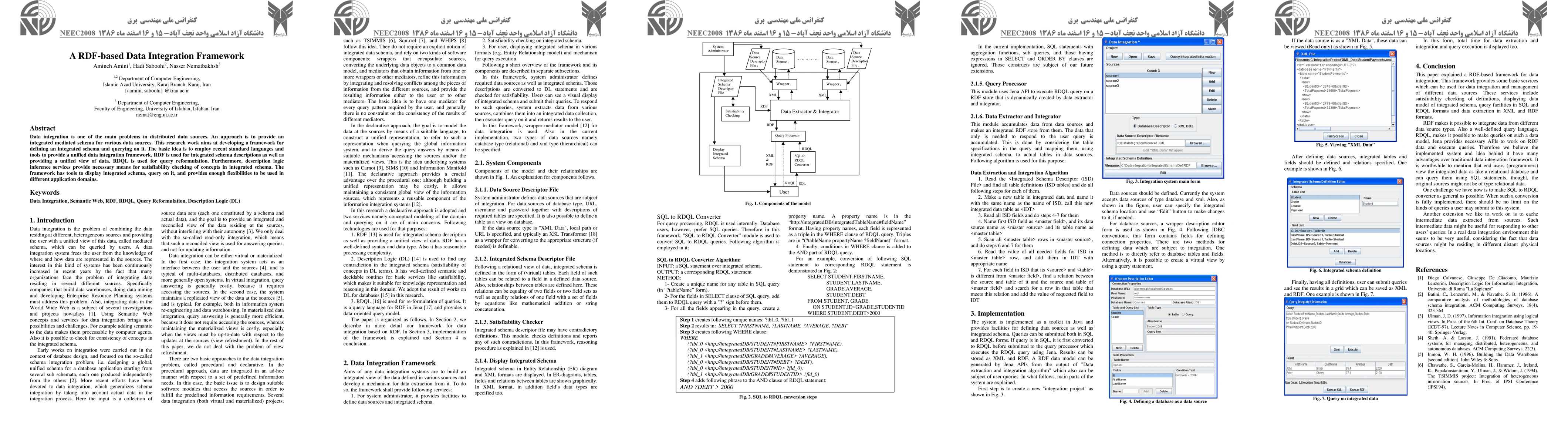 This paper proposes a RDF-based framework for integrating data from distributed sources by defining an integrated schema and enabling unified queries. It employs RDF for schema descriptions, RDQL for query reformulation, and description logic for concept satisfiability checking, offering tools for schema visualization and flexible application across various domains.
