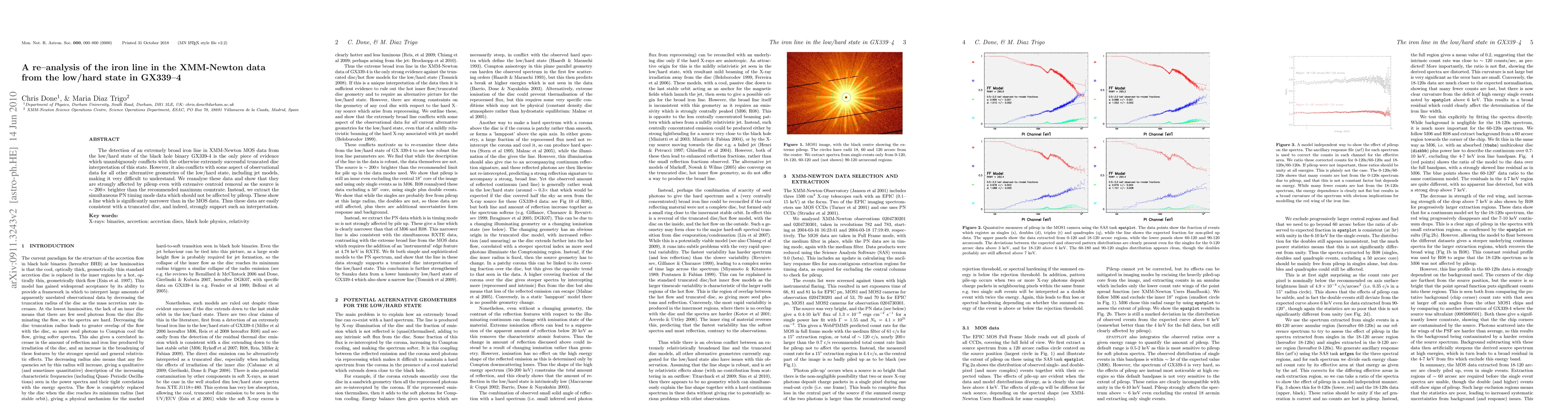The detection of an extremely broad iron line in XMM-Newton MOS data from the low/hard state of the black hole binary GX339-4 is the only piece of evidence which unambiguously conflicts with the otherwise extremely successful truncated disc interpretation of this state. However, it also conflicts with some aspect of observational data for all other alternative geometries of the low/hard state, including jet models, making it very difficult to understand. We re-analyse these data and show that they are strongly affected by pileup even with extensive centroid removal as the source is ~200x brighter than the recommended maximum countrate. Instead, we extract the simultaneous PN timing mode data which should not be affected by pileup. These show a line which is significantly narrower than in the MOS data. Thus these data are easily consistent with a truncated disc, and indeed, strongly support such an interpretation.