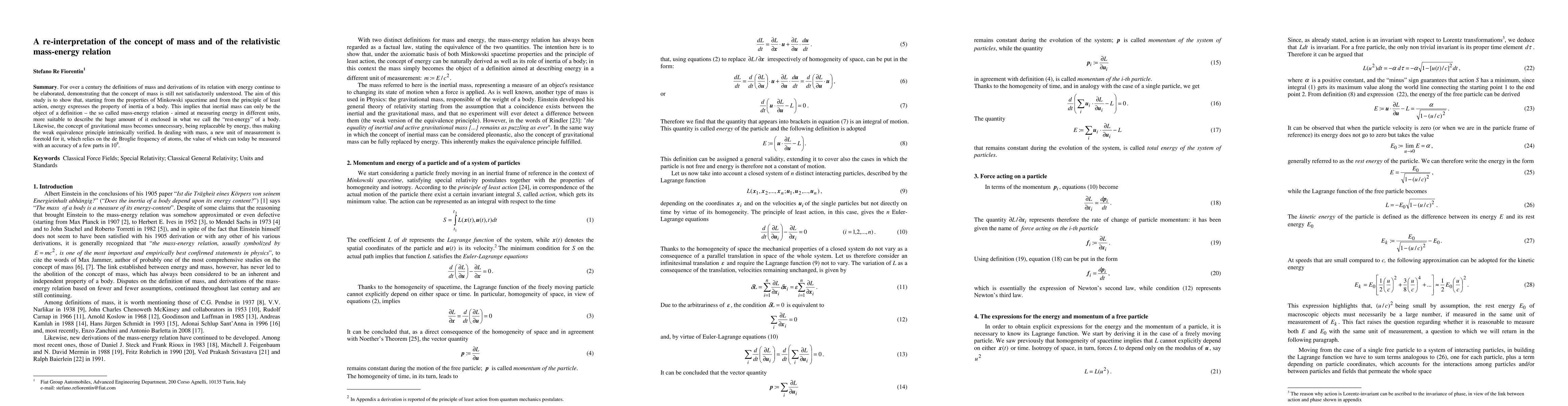 For over a century the definitions of mass and derivations of its relation with energy continue to be elaborated, demonstrating that the concept of mass is still not satisfactorily understood. The aim of this study is to show that, starting from the properties of Minkowski spacetime and from the principle of least action, energy expresses the property of inertia of a body. This implies that inertial mass can only be the object of a definition - the so called mass-energy relation - aimed at measuring energy in different units, more suitable to describe the huge amount of it enclosed in what we call the "rest-energy" of a body. Likewise, the concept of gravitational mass becomes unnecessary, being replaceable by energy, thus making the weak equivalence principle intrinsically verified. In dealing with mass, a new unit of measurement is foretold for it, which relies on the de Broglie frequency of atoms, the value of which can today be measured with an accuracy of a few parts in 10^9.