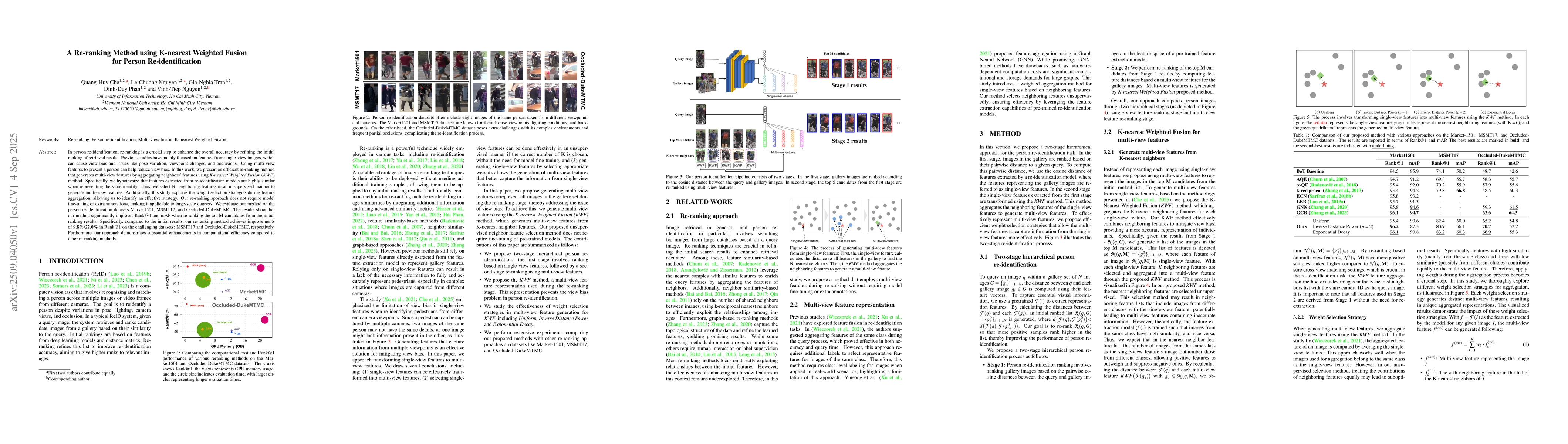 In person re-identification, re-ranking is a crucial step to enhance the overall accuracy by refining the initial ranking of retrieved results. Previous studies have mainly focused on features from single-view images, which can cause view bias and issues like pose variation, viewpoint changes, and occlusions. Using multi-view features to present a person can help reduce view bias. In this work, we present an efficient re-ranking method that generates multi-view features by aggregating neighbors' features using K-nearest Weighted Fusion (KWF) method. Specifically, we hypothesize that features extracted from re-identification models are highly similar when representing the same identity. Thus, we select K neighboring features in an unsupervised manner to generate multi-view features. Additionally, this study explores the weight selection strategies during feature aggregation, allowing us to identify an effective strategy. Our re-ranking approach does not require model fine-tuning or extra annotations, making it applicable to large-scale datasets. We evaluate our method on the person re-identification datasets Market1501, MSMT17, and Occluded-DukeMTMC. The results show that our method significantly improves Rank@1 and mAP when re-ranking the top M candidates from the initial ranking results. Specifically, compared to the initial results, our re-ranking method achieves improvements of 9.8%/22.0% in Rank@1 on the challenging datasets: MSMT17 and Occluded-DukeMTMC, respectively. Furthermore, our approach demonstrates substantial enhancements in computational efficiency compared to other re-ranking methods.