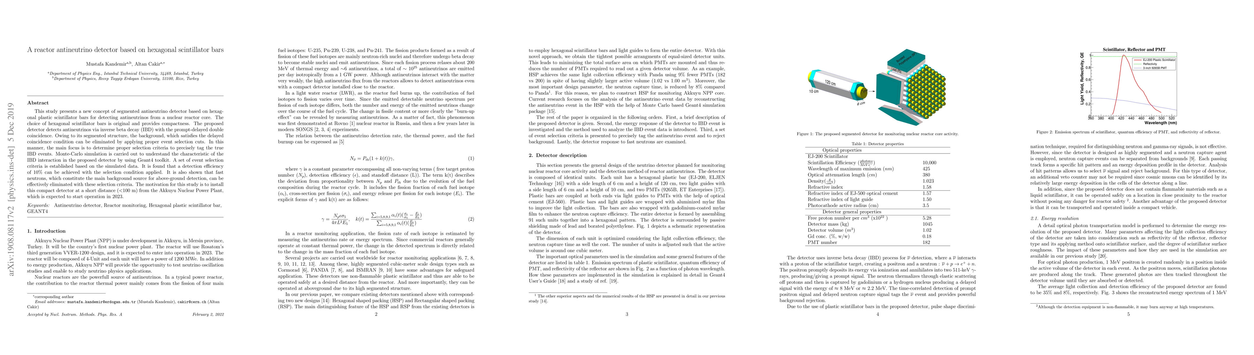 This study introduces a compact segmented antineutrino detector using hexagonal plastic scintillator bars to detect reactor antineutrinos via inverse beta decay. The design effectively eliminates background noise through event selection cuts, achieving a 10% detection efficiency and demonstrating the feasibility of installing the detector near the Akkuyu Nuclear Power Plant.